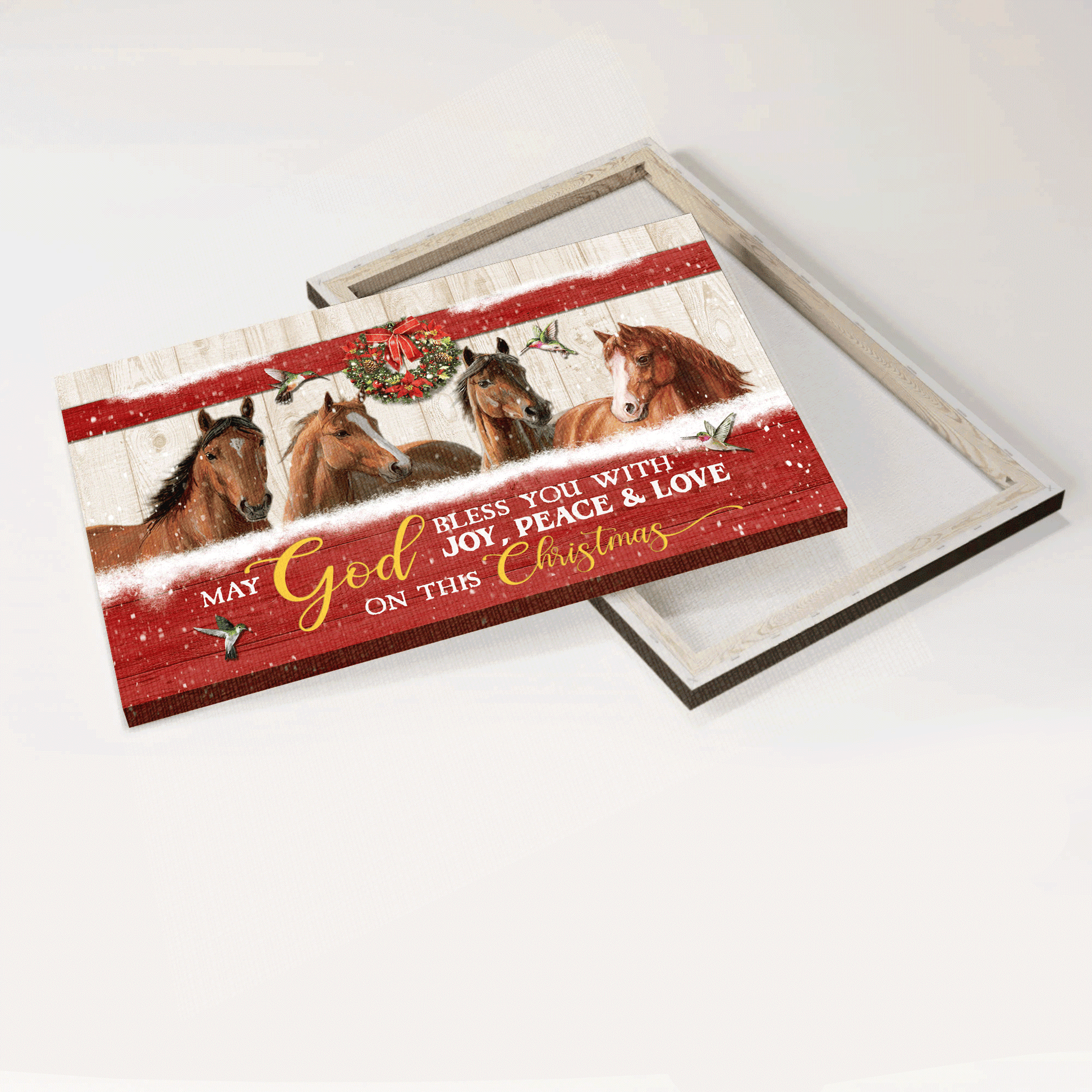 Do you want to add some joy to your living space? Then, this amazing Jesus Landscape Canvas - Stunning Horses Drawing, Christmas Wreath Canvas - Gift For Christian - May God Bless You With Joy Canvas Prints, Wall Art is the perfect option for you!