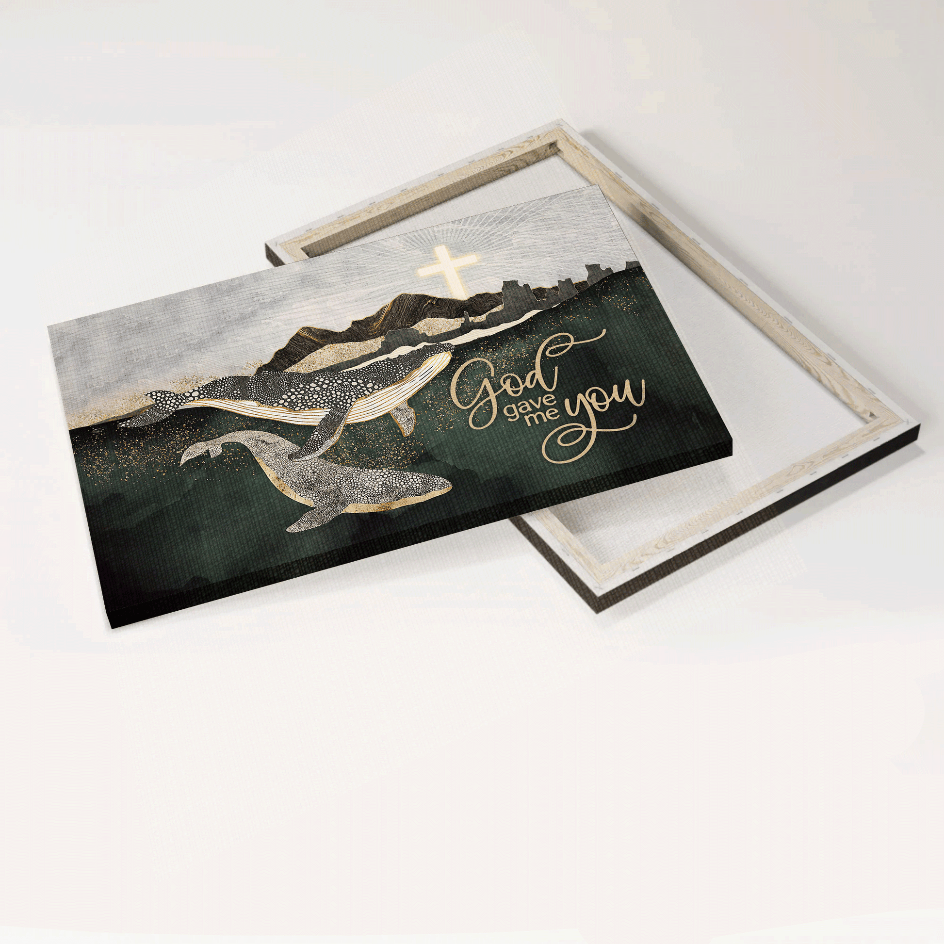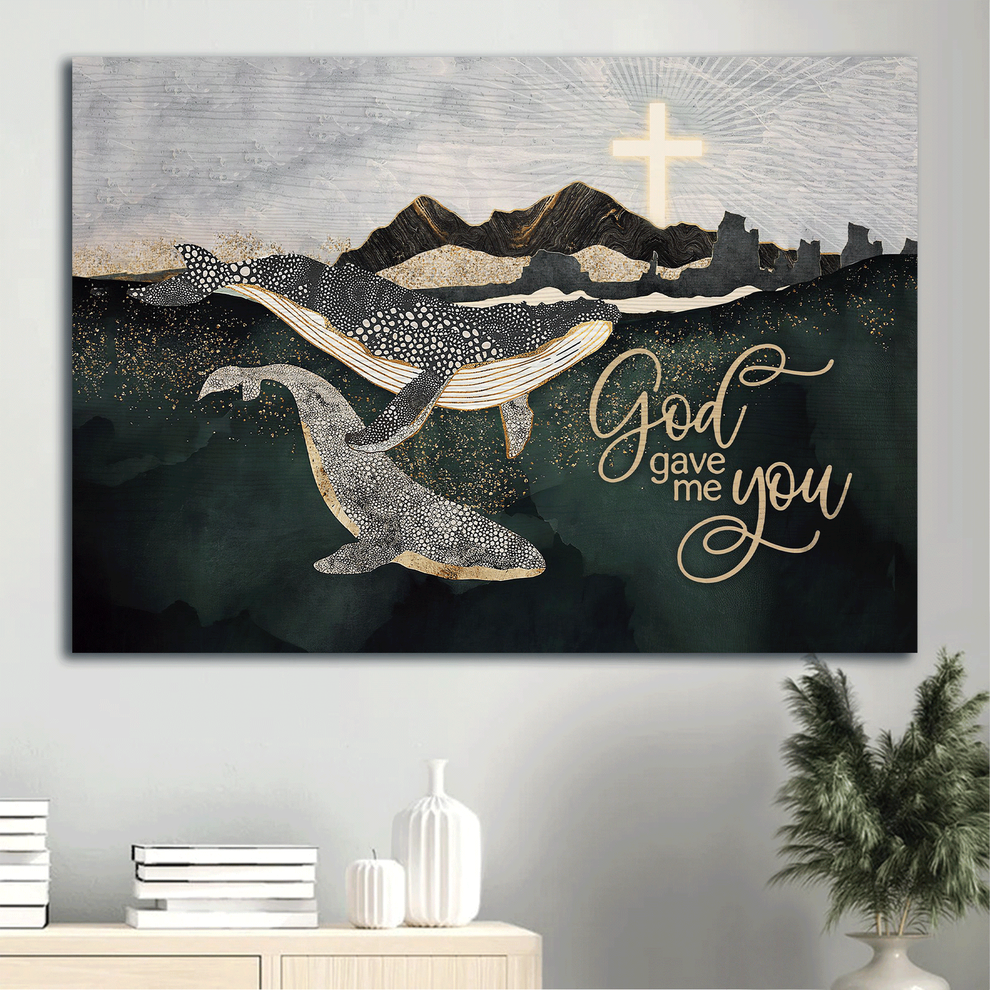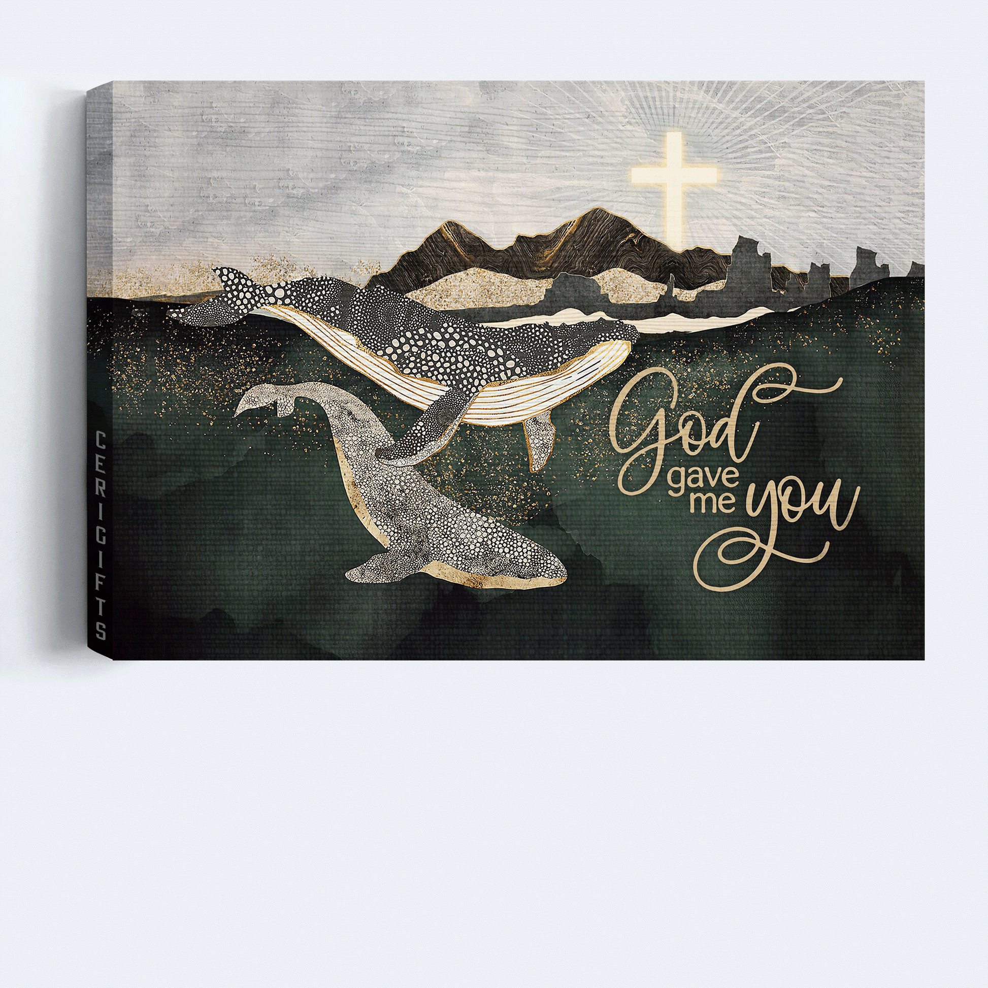 Jesus Landscape Canvas - Stunning Whale, Deep Ocean, Light Cross Canvas - Gift For Christian - God Gave Me You Canvas