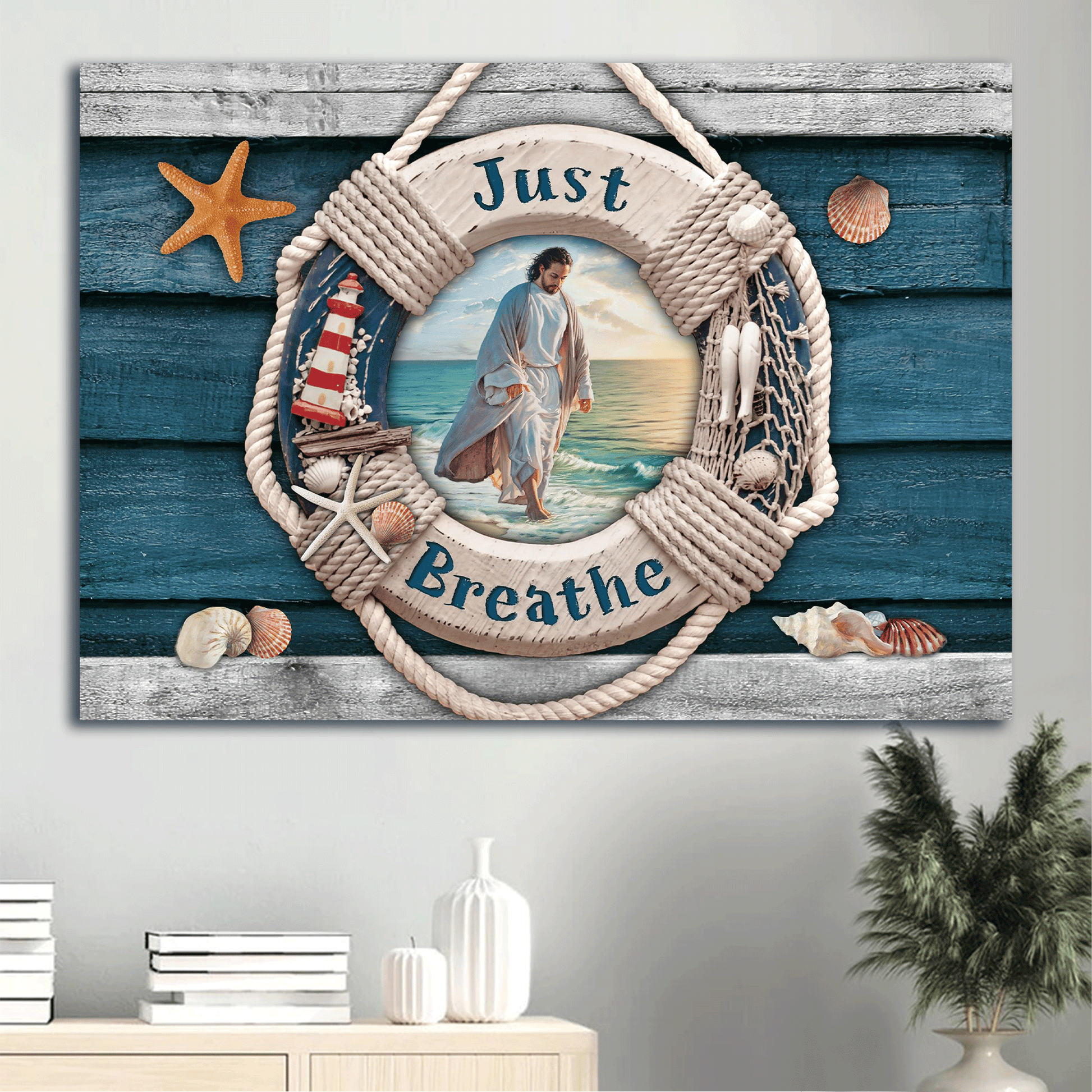 Jesus Landscape Canvas - Summer Vibe, Jesus Walking On Water, Ocean Painting Canvas - Gift For Christian - Just Breathe Canvas