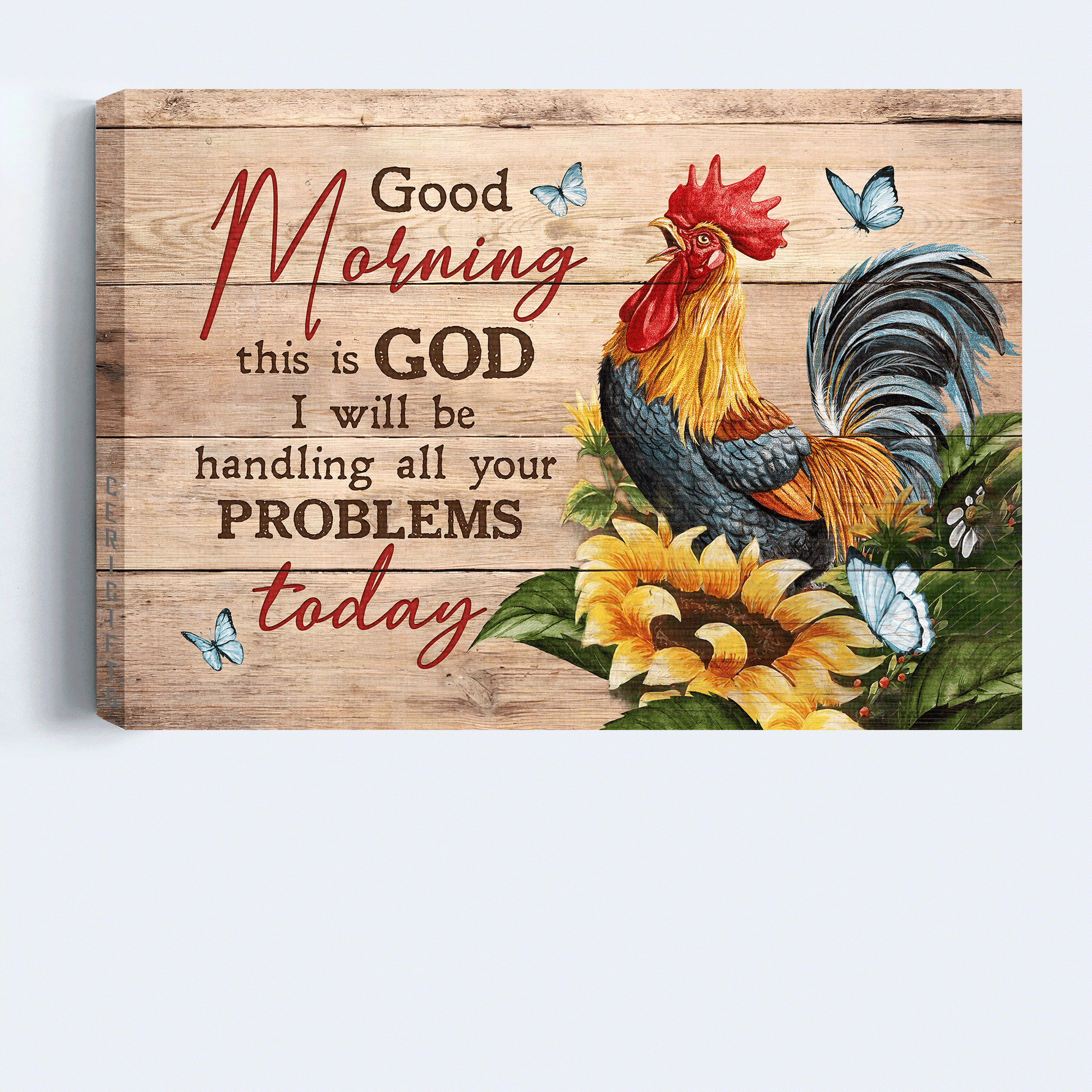 Do you want to add some joy to your living space? Then, this amazing Jesus Landscape Canvas - Sunflower, Blue Butterfly, Rooster Painting Canvas - Gift For Christian - Good Morning, This Is God Canvas Prints, Wall Art is the perfect option for you!