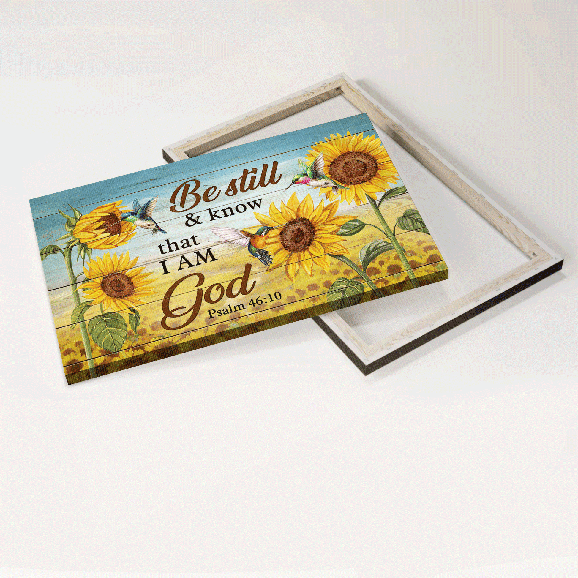 Jesus Landscape Canvas - Sunflower Field, Hummingbird Canvas - Gift For Christian - Be Still & Know That I Am God Canvas