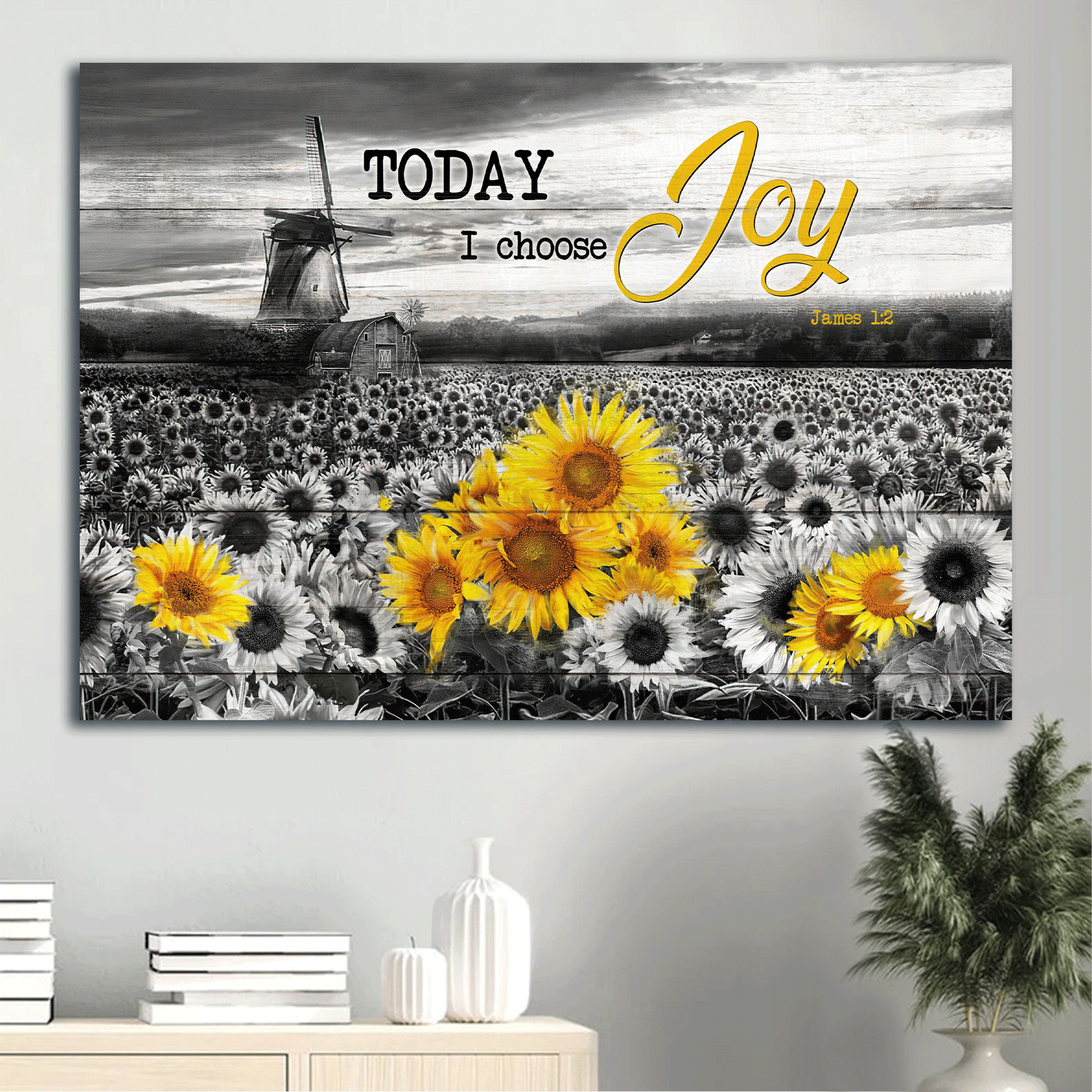Do you want to add some joy to your living space? Then, this amazing Jesus Landscape Canvas - Sunflower Field, Windmill Canvas - Gift For Christian - Today I Choose Joy Canvas Prints, Wall Art is the perfect option for you!
