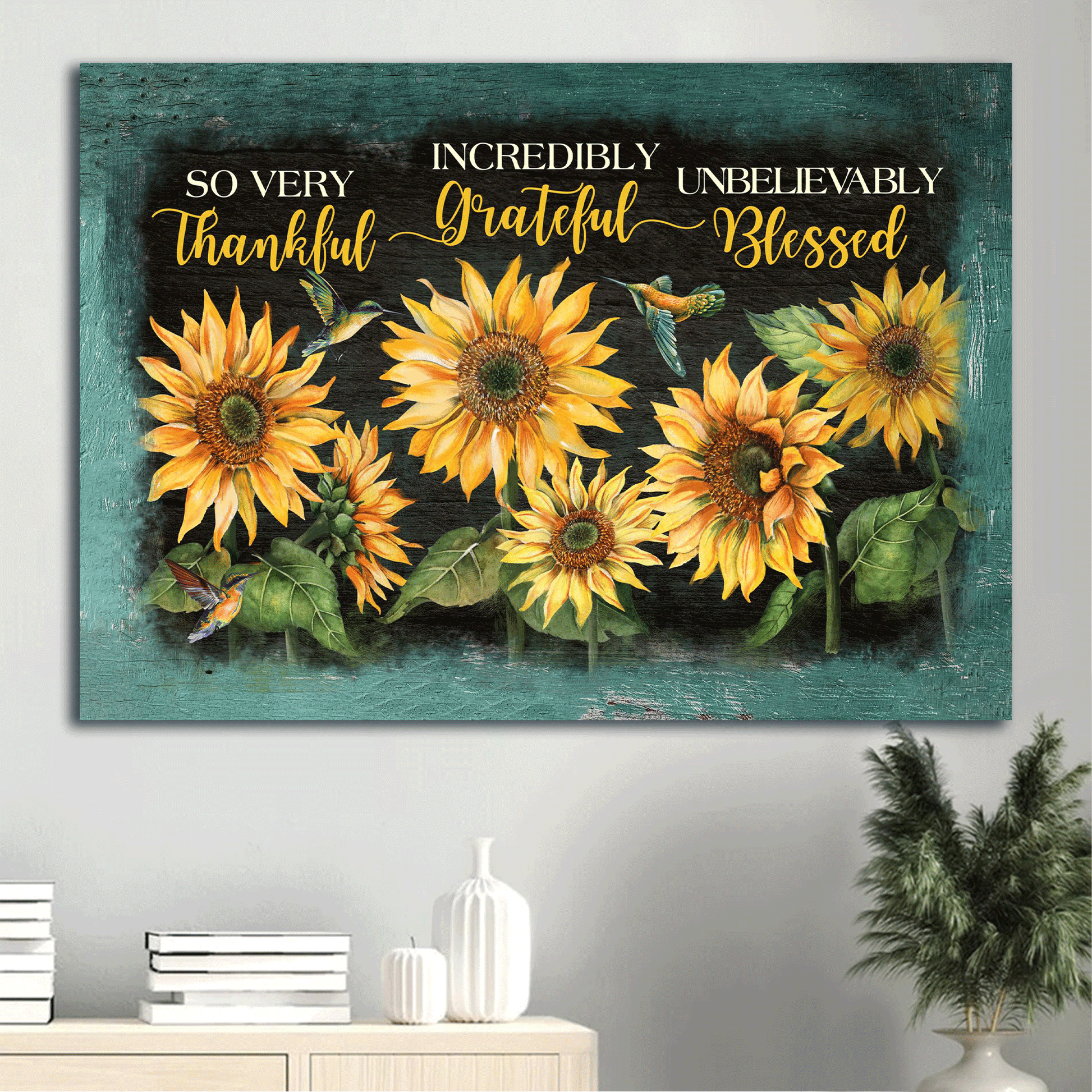 Jesus Landscape Canvas - Sunflower, Hummingbird Canvas - Gift For Christian - Thankful, Grateful, Blesses Canvas