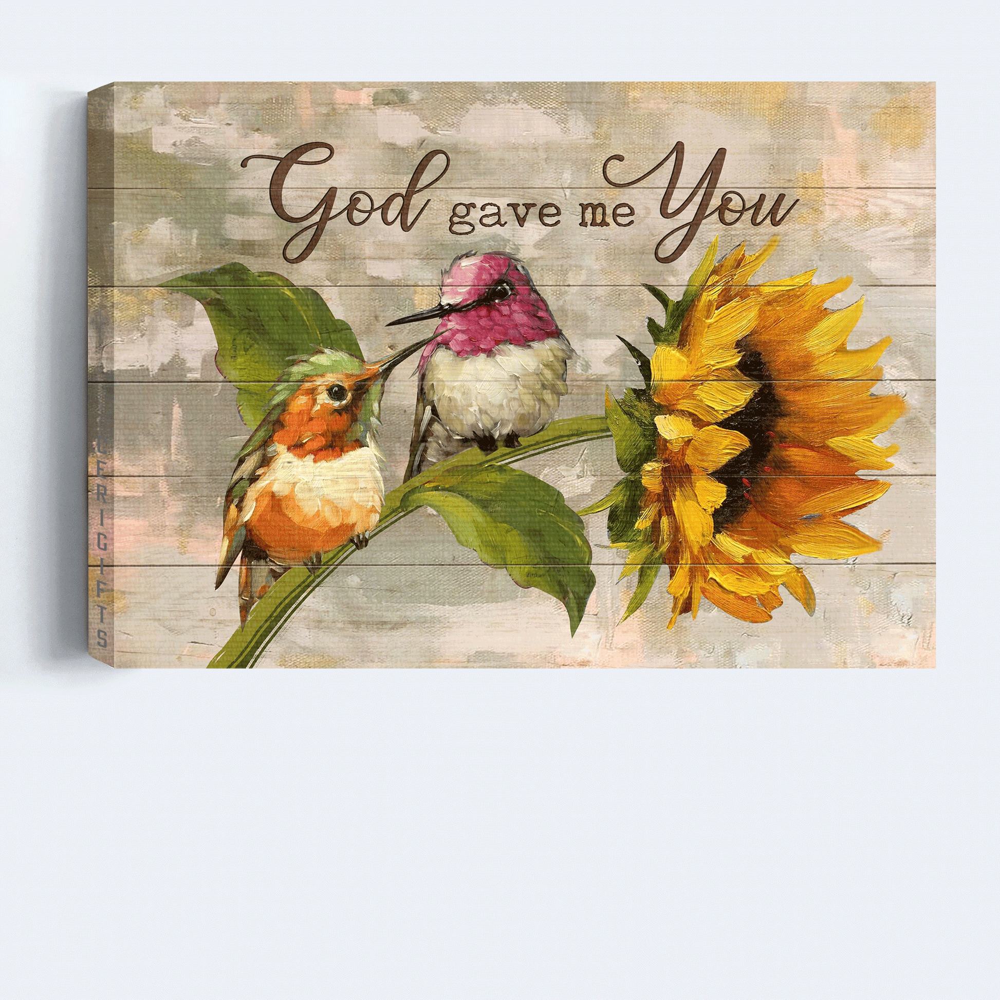 Jesus Landscape Canvas - Sunflower Painting, Hummingbird Painting Canvas- Gift For Christian - God Gave Me You Canvas
