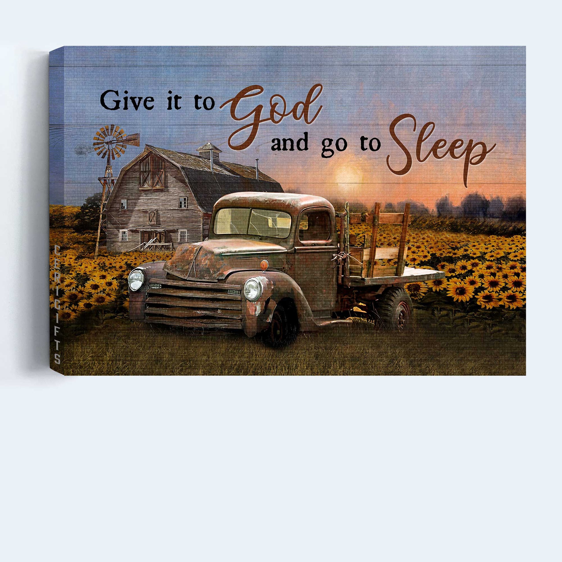 Jesus Landscape Canvas - Sunset On The Field, Sunflower Field, Countryside Canvas - Gift For Christian - Give It To God And Go To Sleep Canvas Prints, Christian Wall Art will suit for any room in your house from living room, bedroom, kitchen to entryway.