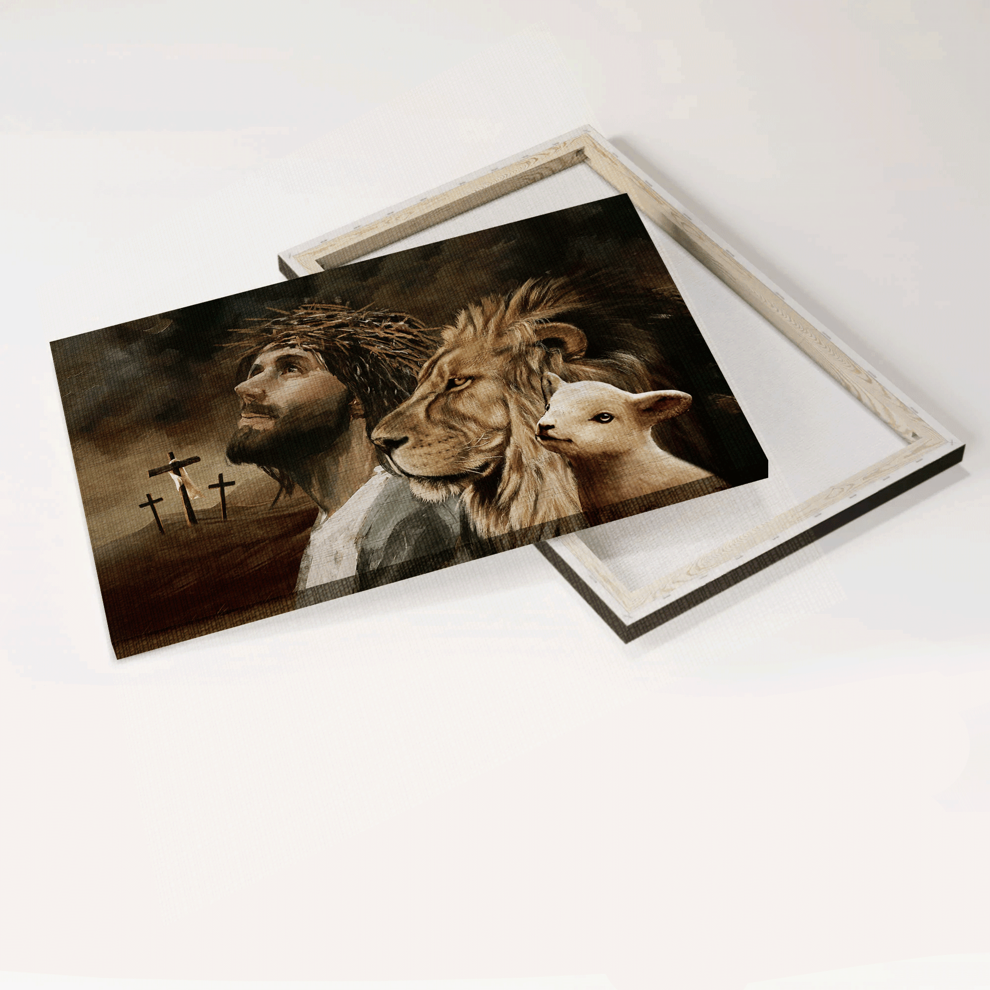 Jesus Landscape Canvas - The Lamb Of God, The Lion Of Judah, Jesus Christ, Cross Symbol Canvas - Gift For Christian