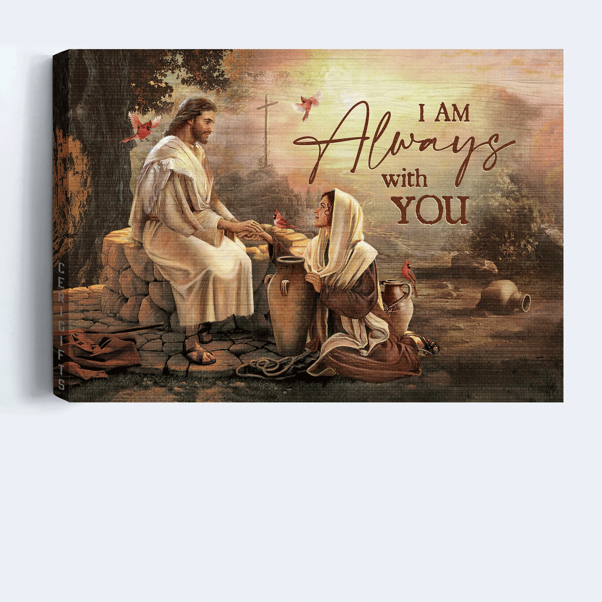 Jesus Landscape Canvas - The Life Of Jesus, Dear Maria, Red Cardinal Canvas - Gift For Christian - I Am Always With You Canvas