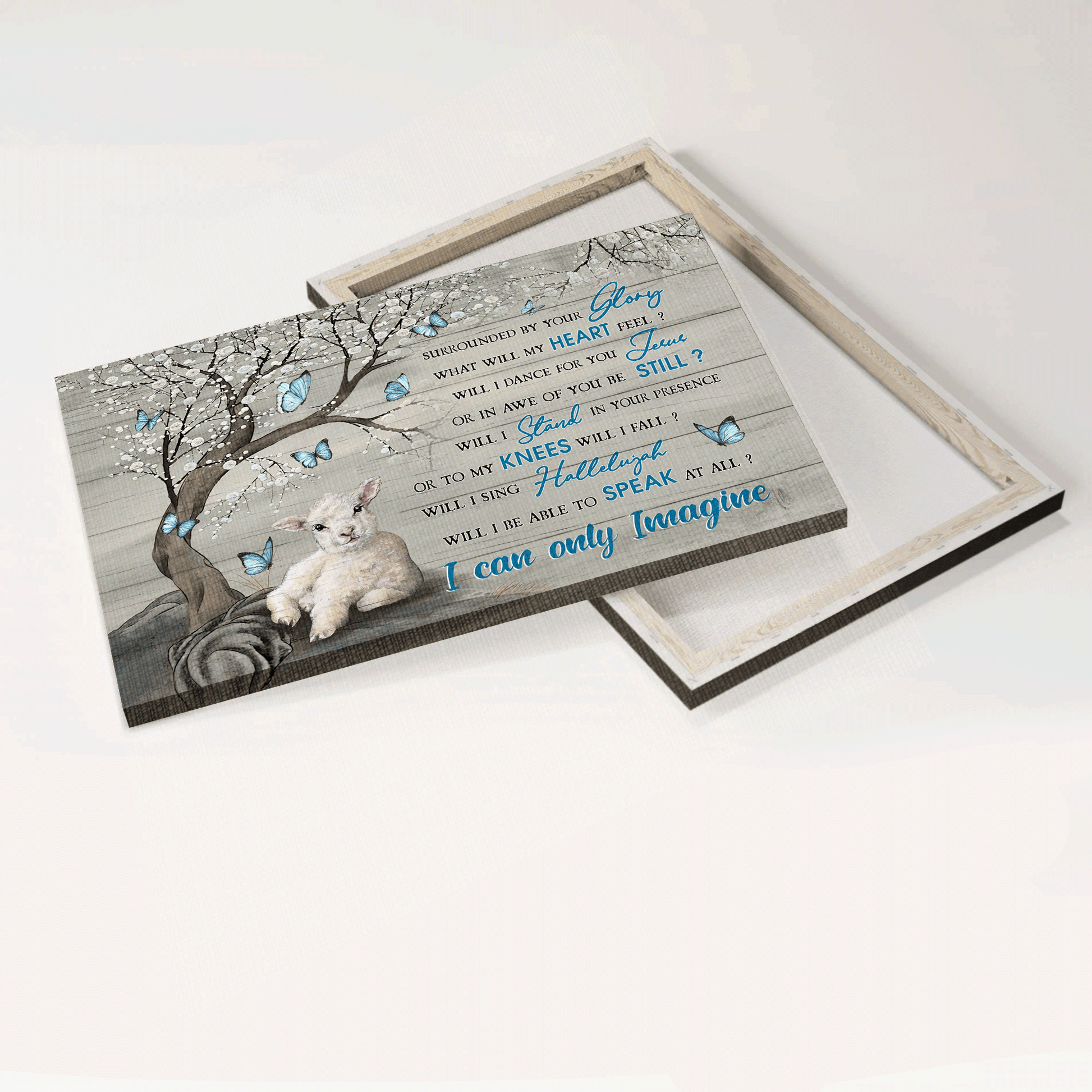 Jesus Landscape Canvas - The Little Lamb, Blue Butterflies Canvas - Gift For Christian - I Can Only Imagine Canvas