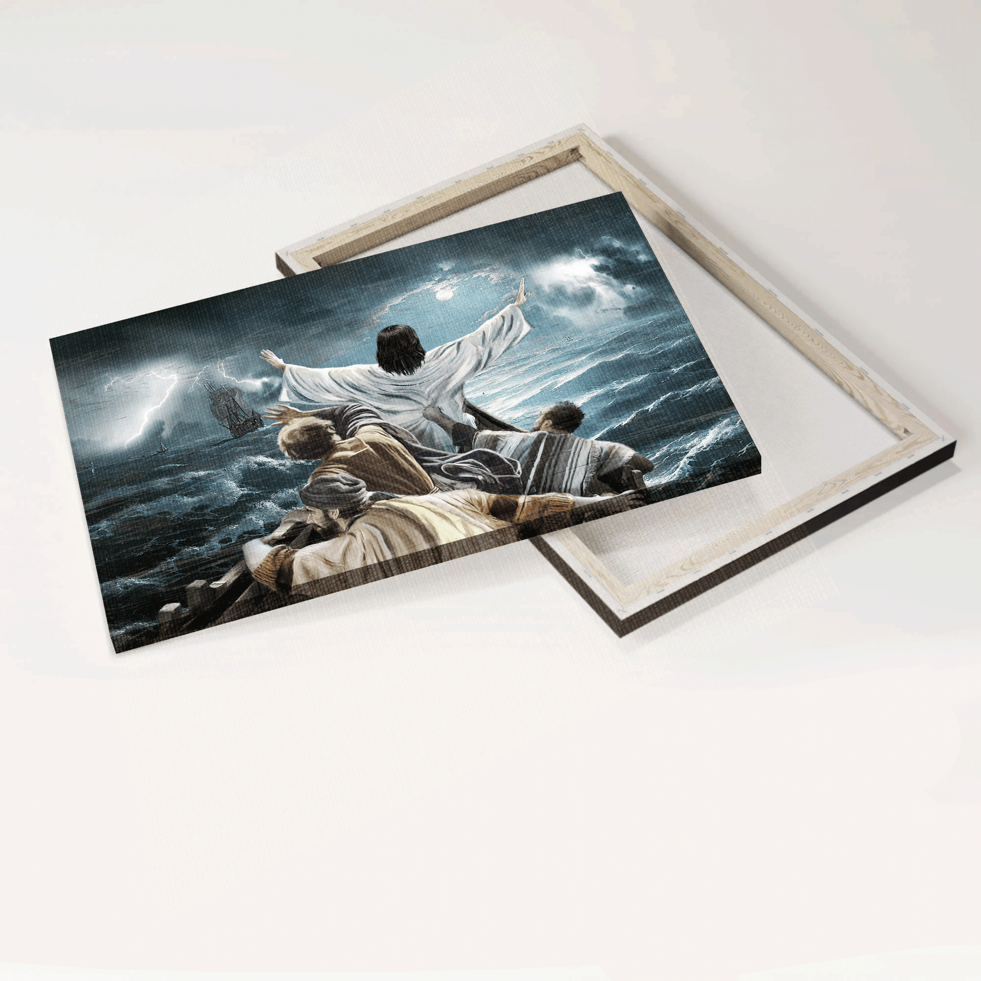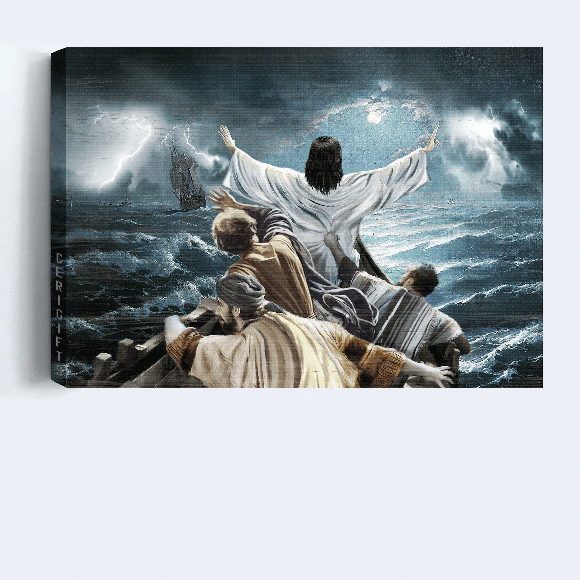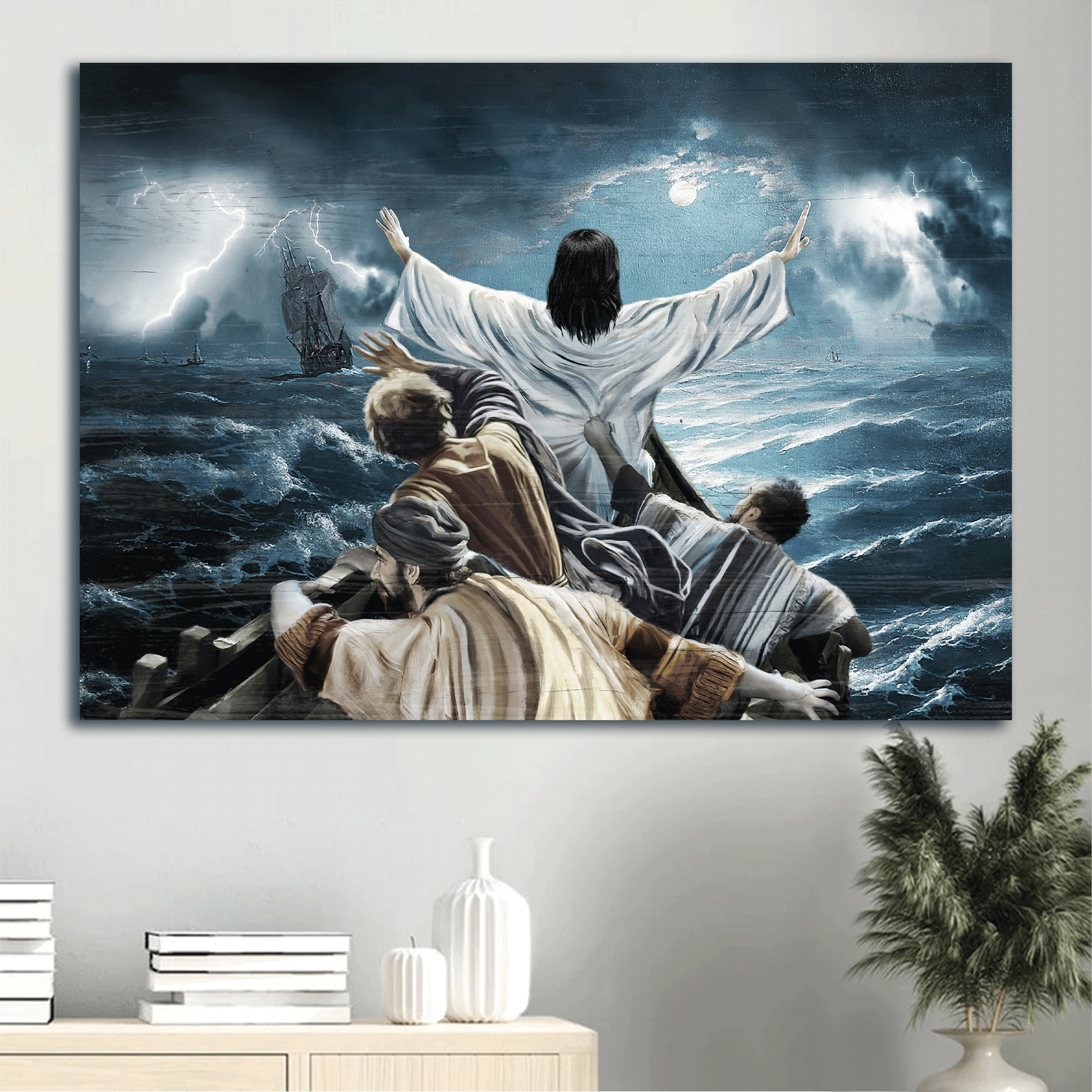 Jesus Landscape Canvas - The Storm On The Sea, Jesus Saved Us - Gift For Christian