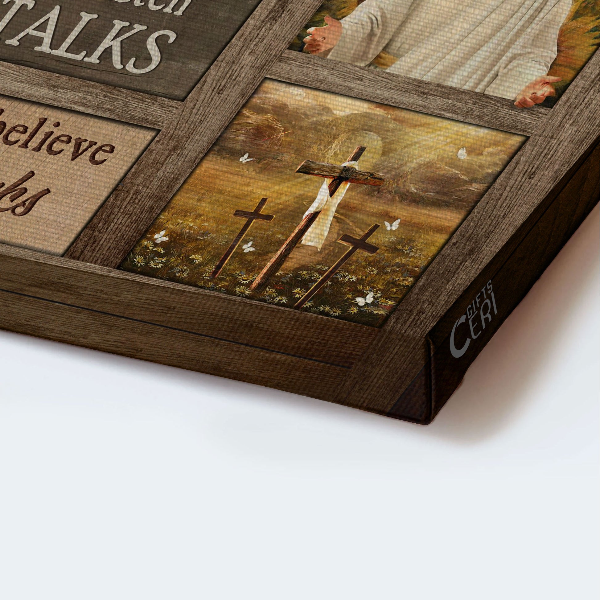 Are you a religious Christian? And you are looking for something to decorate your home? This Abstract Jesus painting, Three crosses, Positive quote, When you believe, God works - Jesus Landscape Canvas Prints, Christian Wall Art is an excellent option for you!