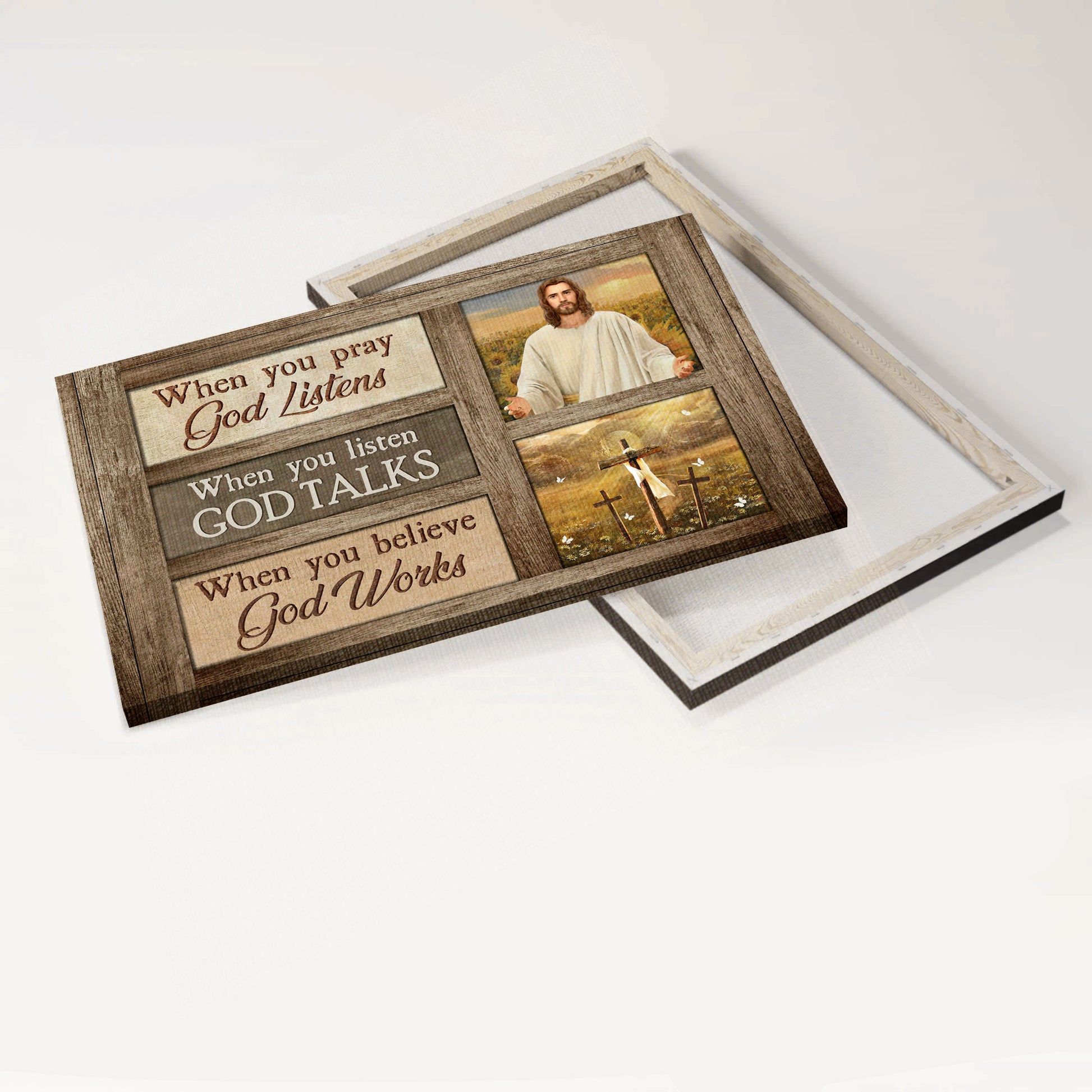 Jesus Landscape Canvas - Three crosses, Positive quote Landscape Canvas - Inspirational gift, Gift For Religious Christian - When you believe, God works