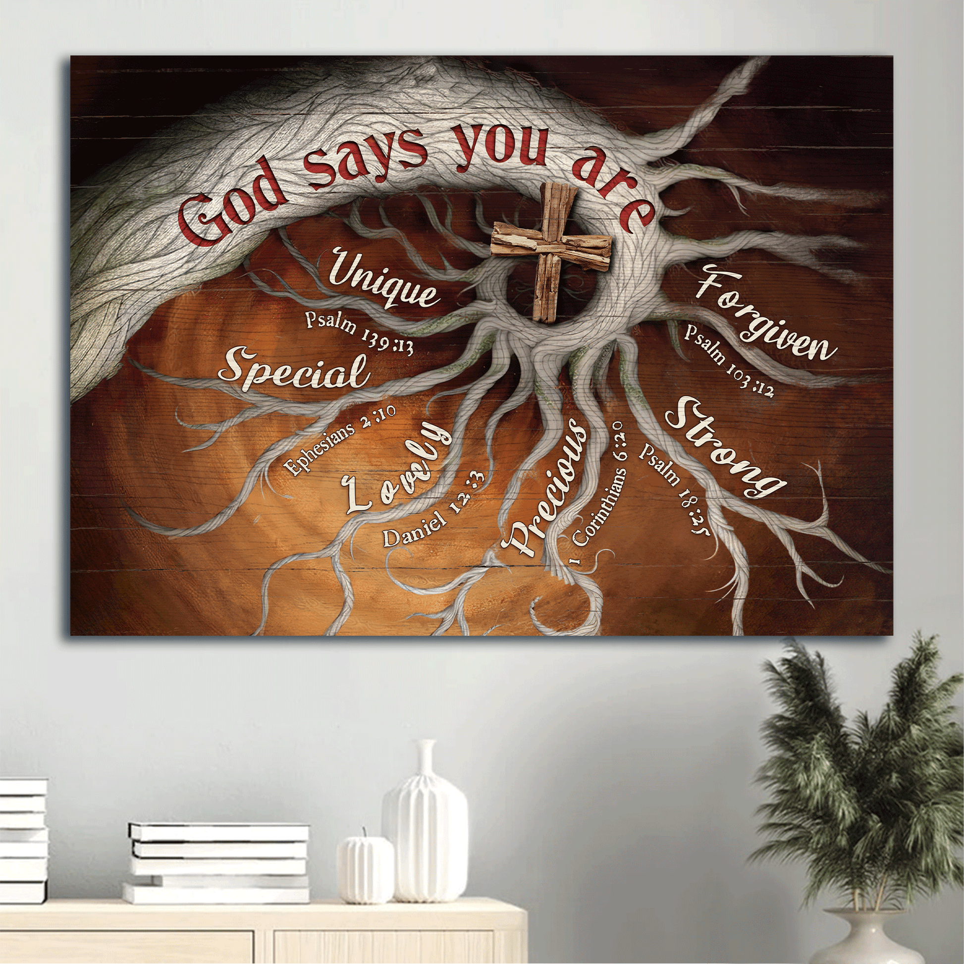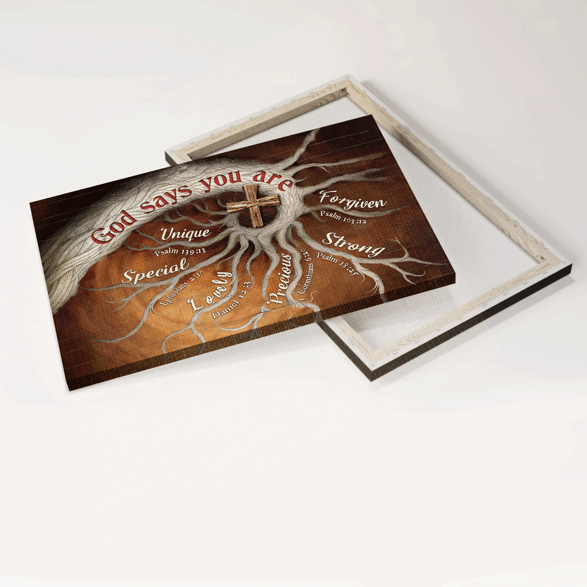 Jesus Landscape Canvas - tree roots, Wooden cross painting, Bible verses Landscape Canvas - Inspirational gift, Gift For Religious Christian - God says you are