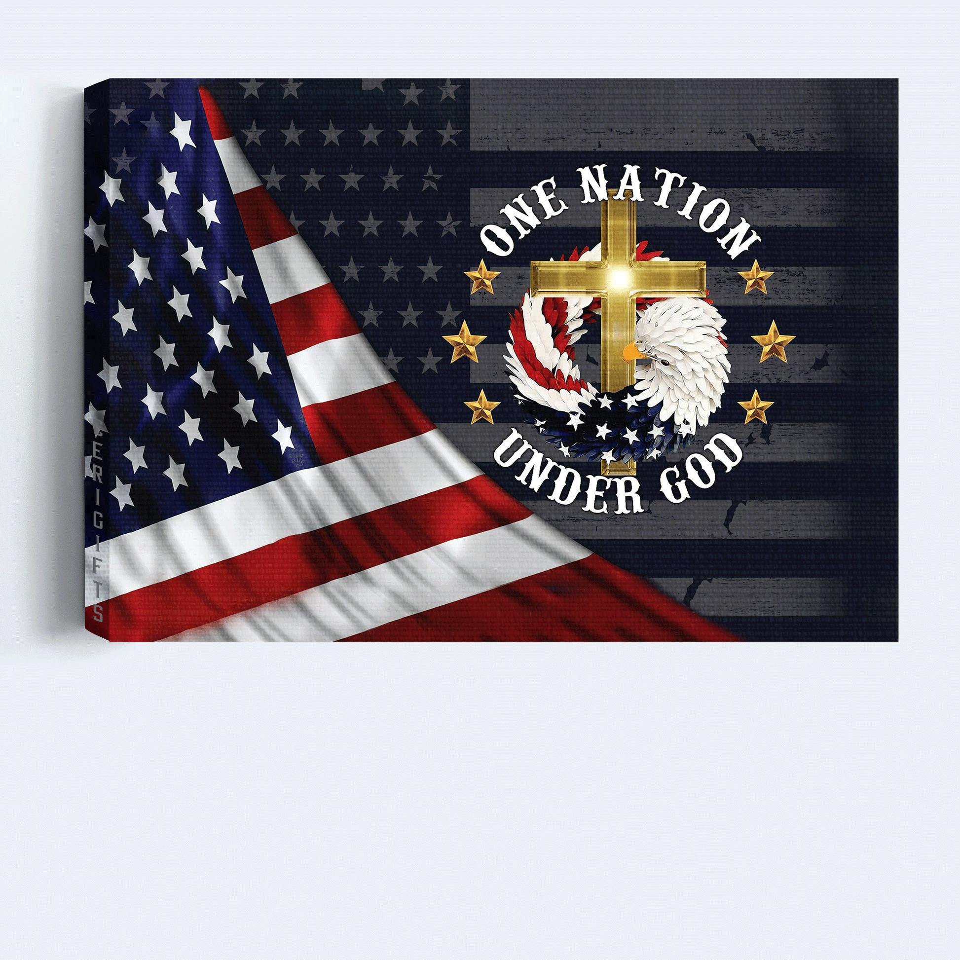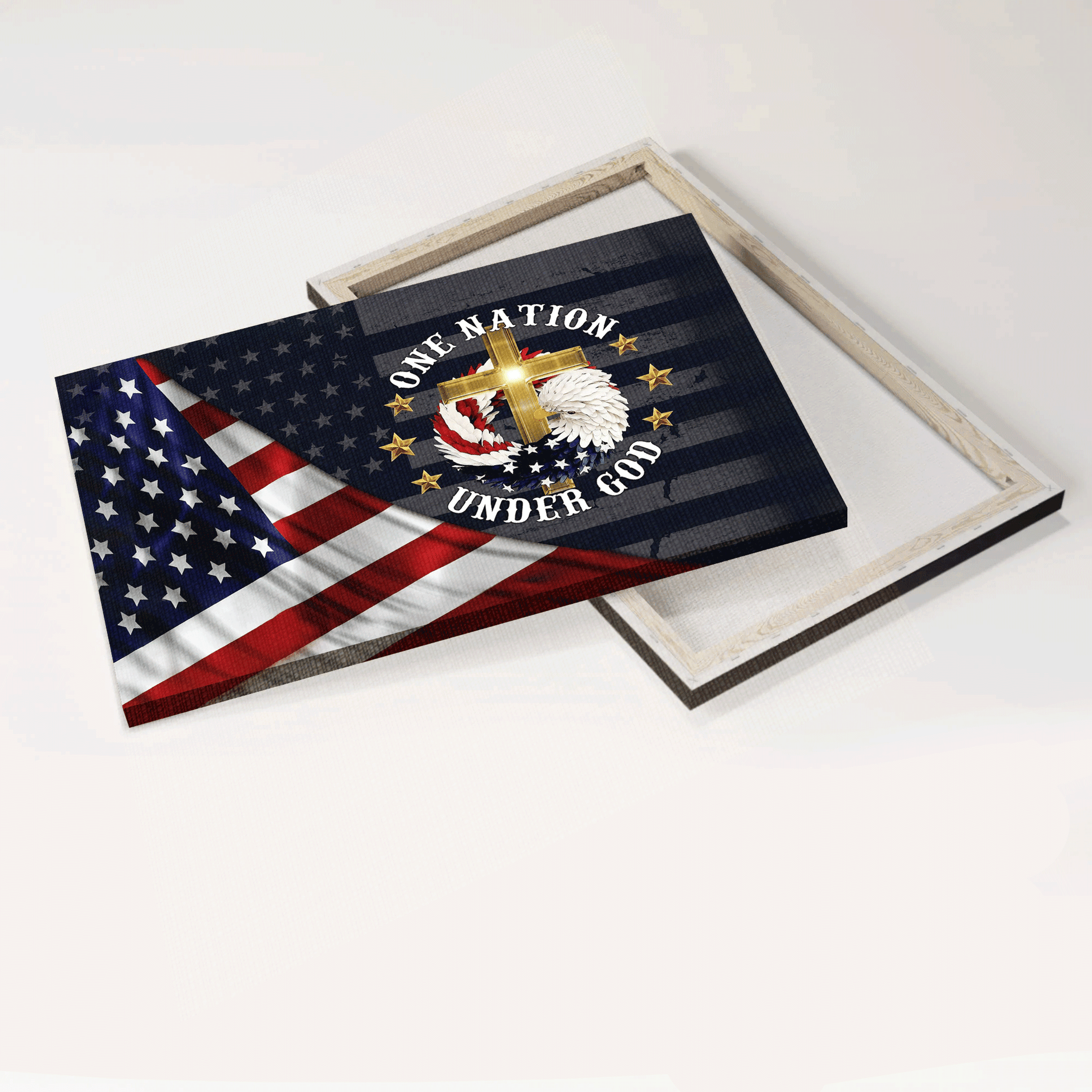 Jesus Landscape Canvas - Us Flag, American Bald Eagle, Cross Canvas - Gift For Christian - Amazing Nation Under God Canvas
