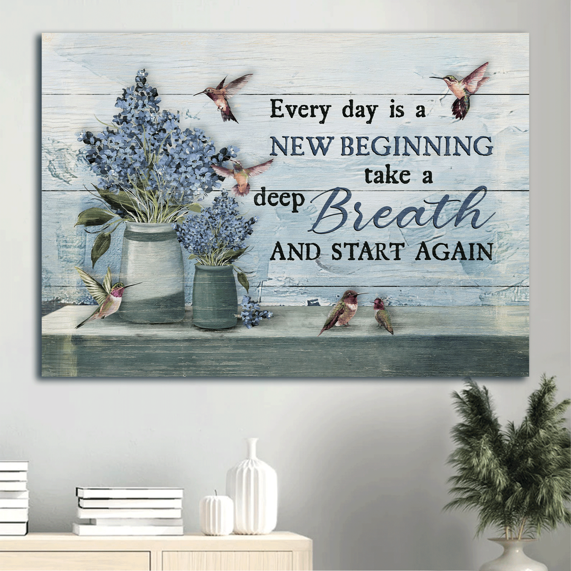 Jesus Landscape Canvas - Vintage Blue Flower, Beautiful Hummingbird Canvas - Gift For Christian - Every Day Is A New Beginning Canvas