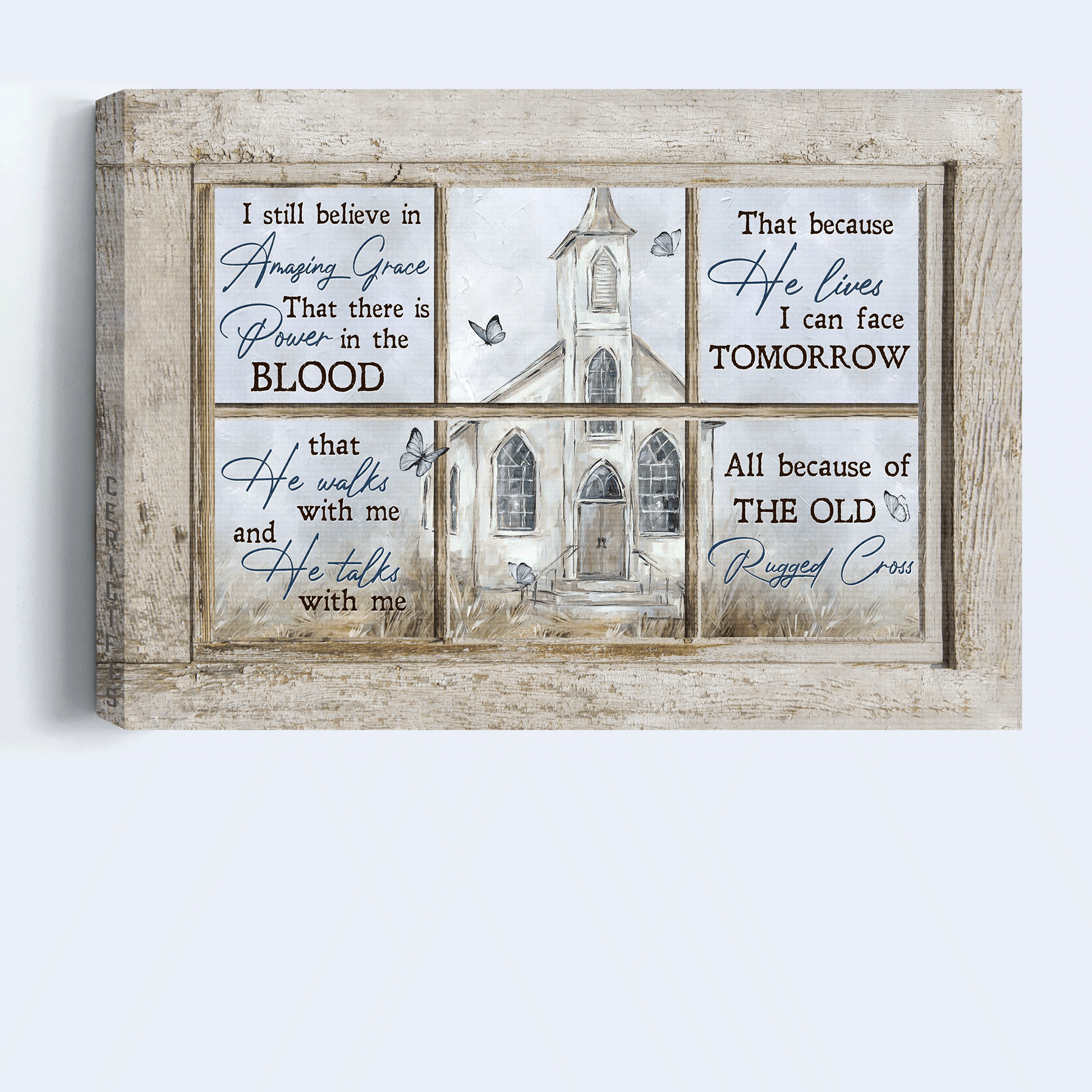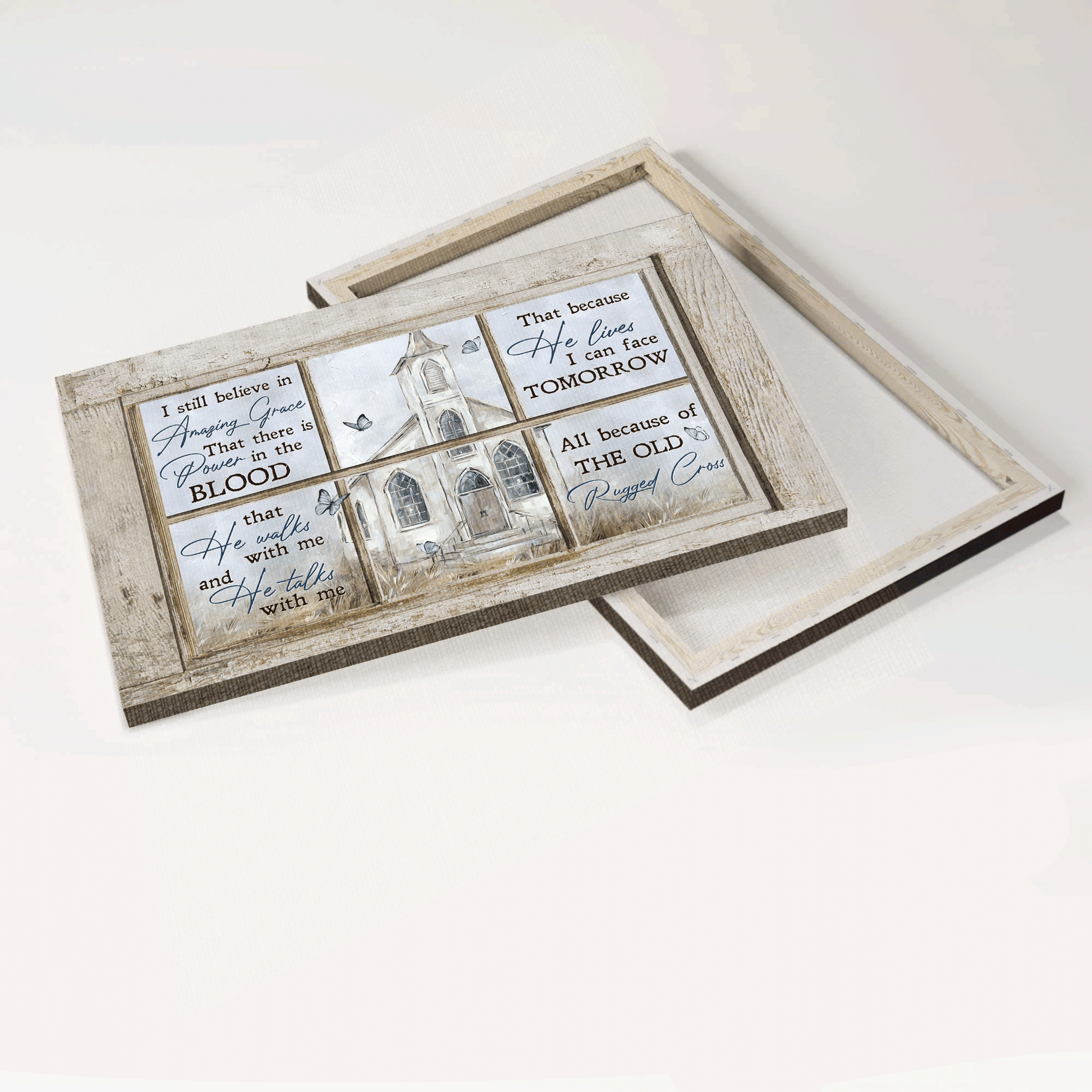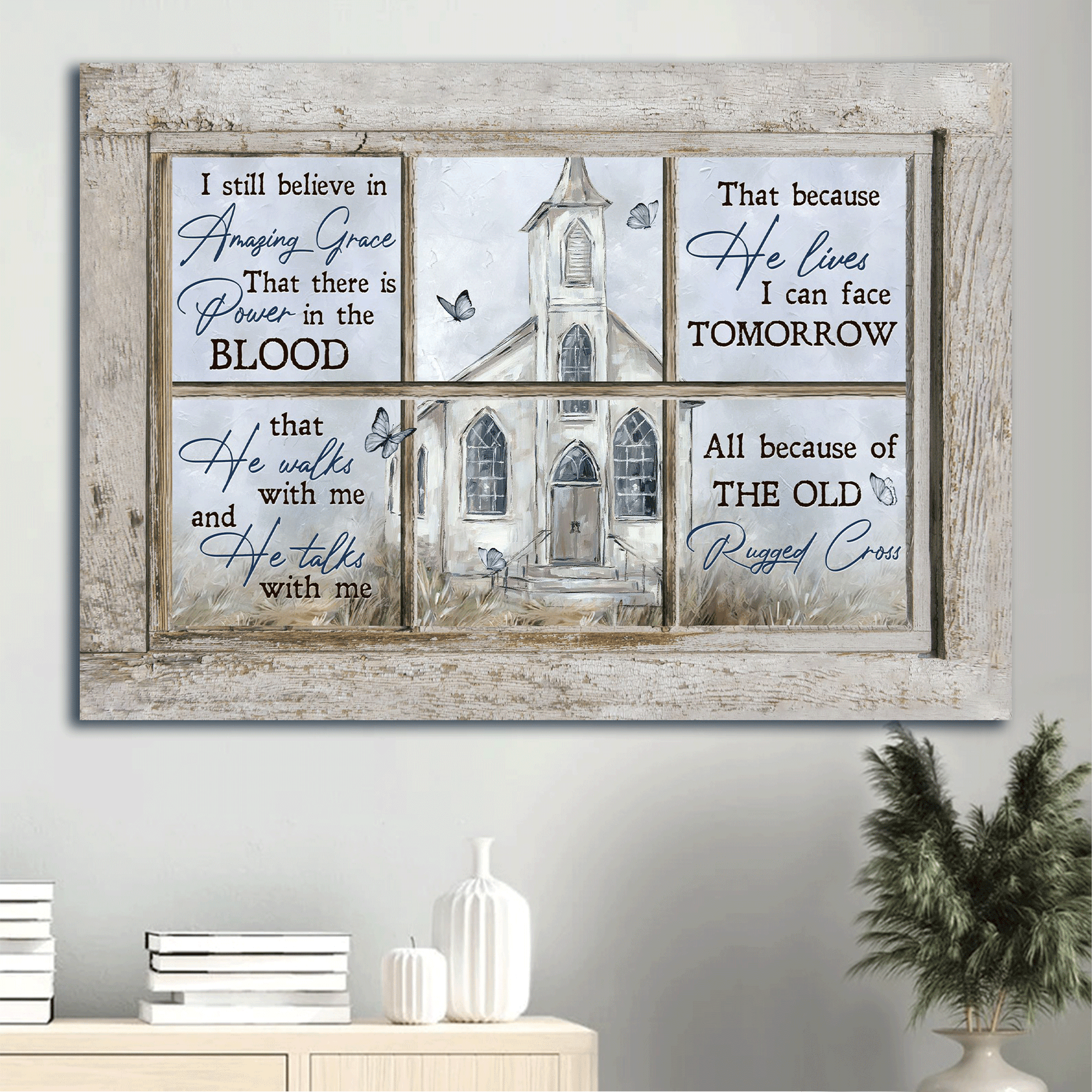 Jesus Landscape Canvas - Vintage Church, Blue Butterfly Canvas - Gift For Christian - I Still Believe In Amazing Grace Canvas