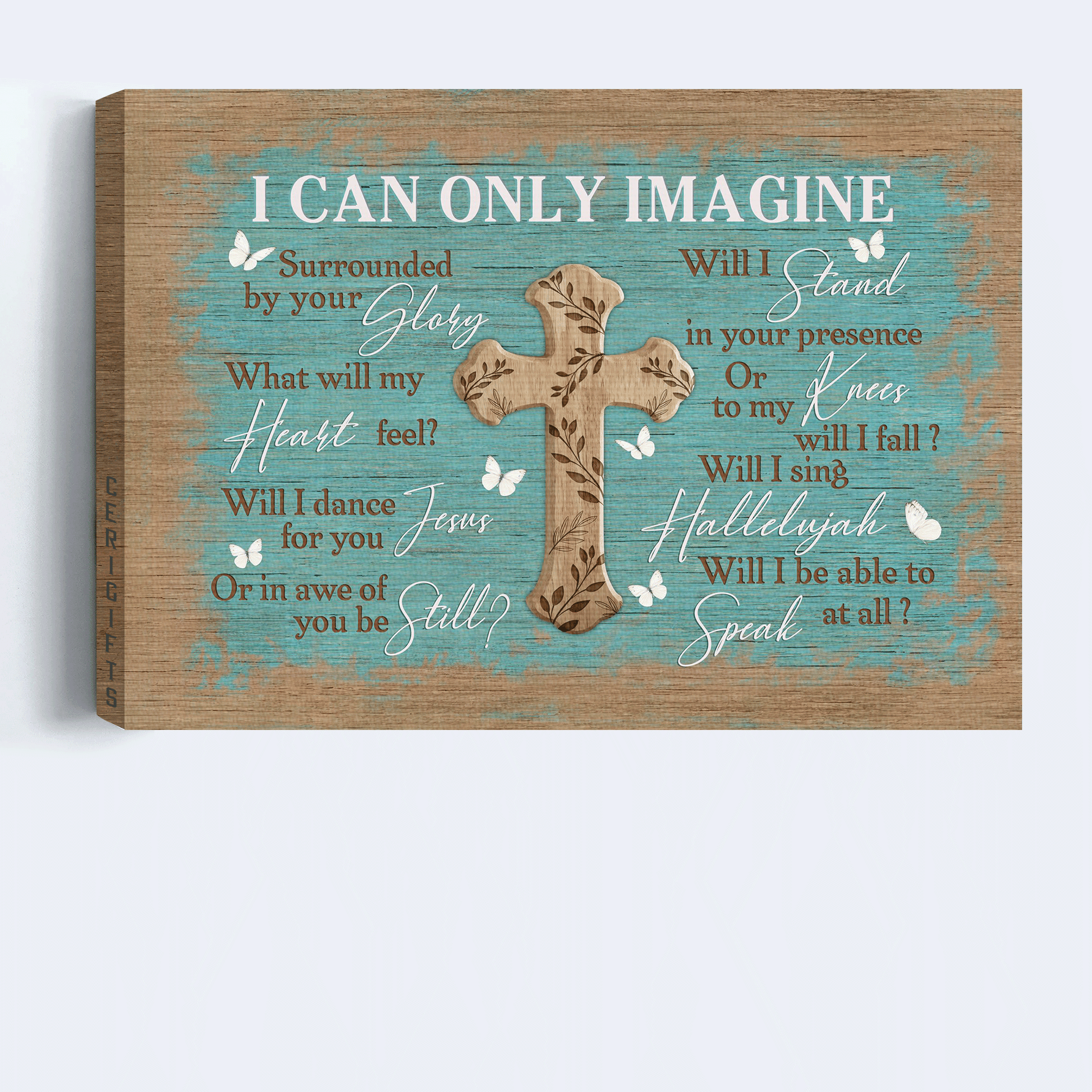 The image of the vintage cross with blue background and meaningful quotes of this amazing Jesus Landscape Canvas - Vintage Cross, Blue Background, Butterfly Canvas - Gift For Christian - I Can Only Imagine Canvas Prints, Wall Art will definitely be a meaningful gift not only for your friend but also for your lover and your family. This wonderful canvas will be suitable for any room in your house from the kitchen, bedroom, and living room to outside space.
