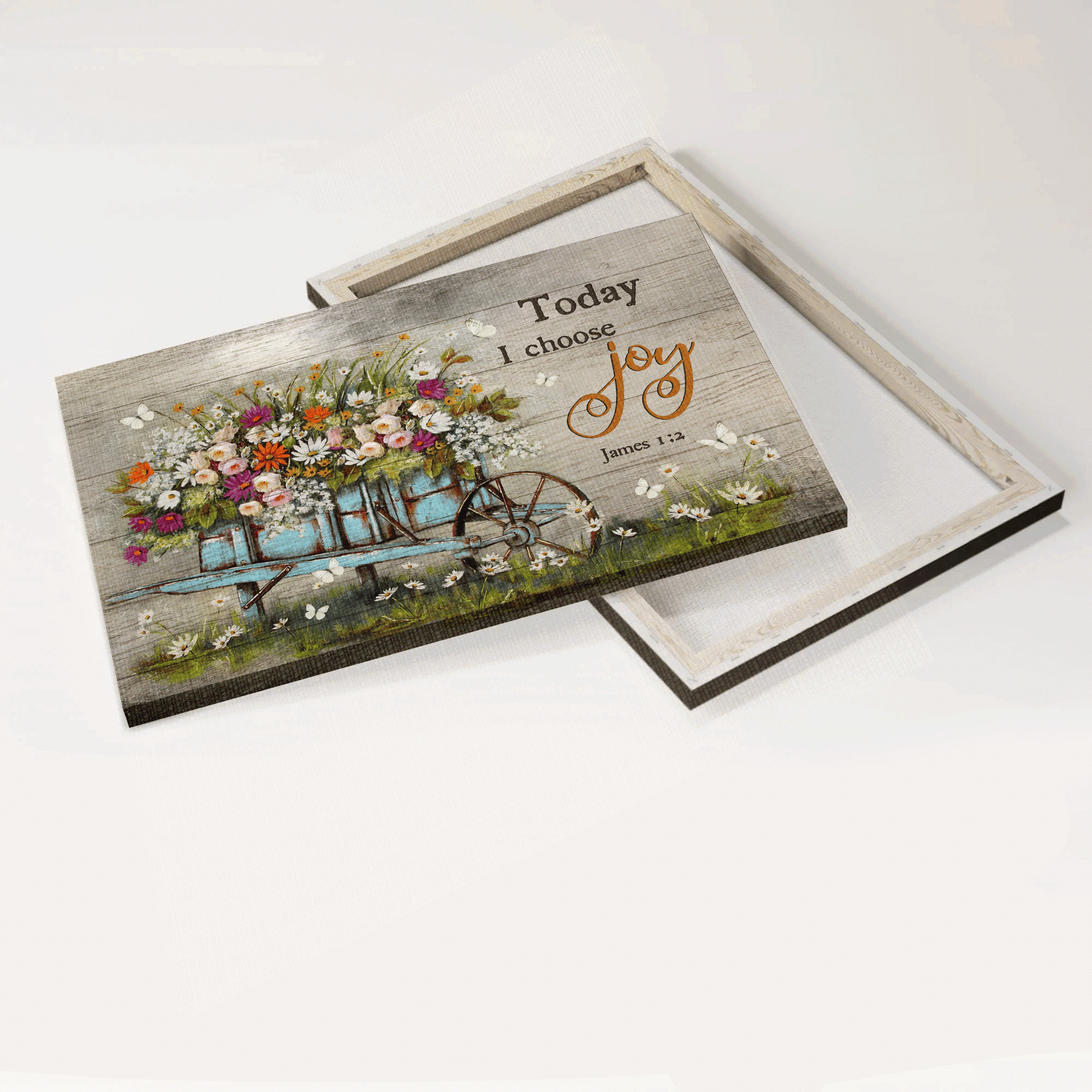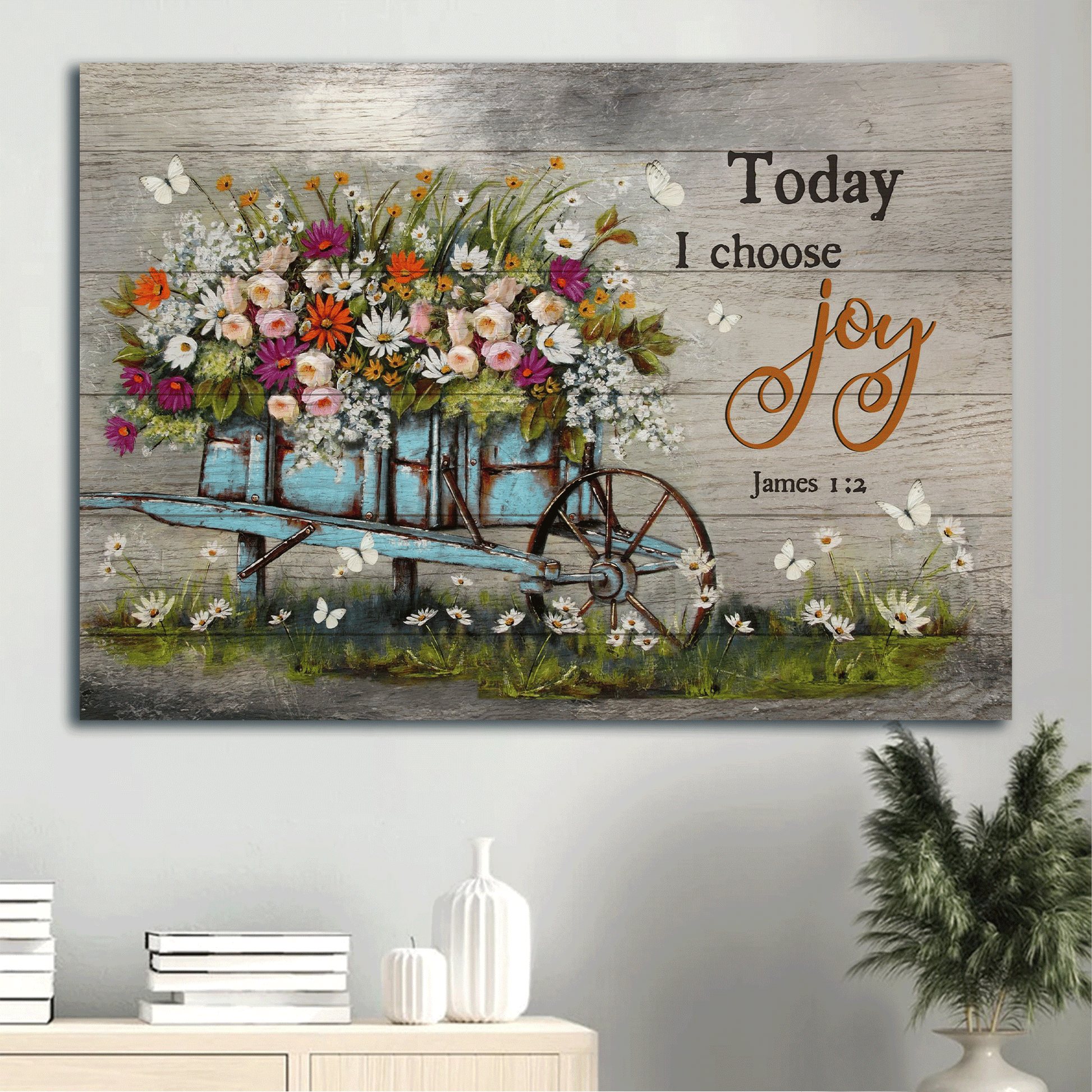 Jesus Landscape Canvas - Vintage Flower, Flower Wooden Cart Canvas - Gift For Christian - Today I Choose Joy Canvas