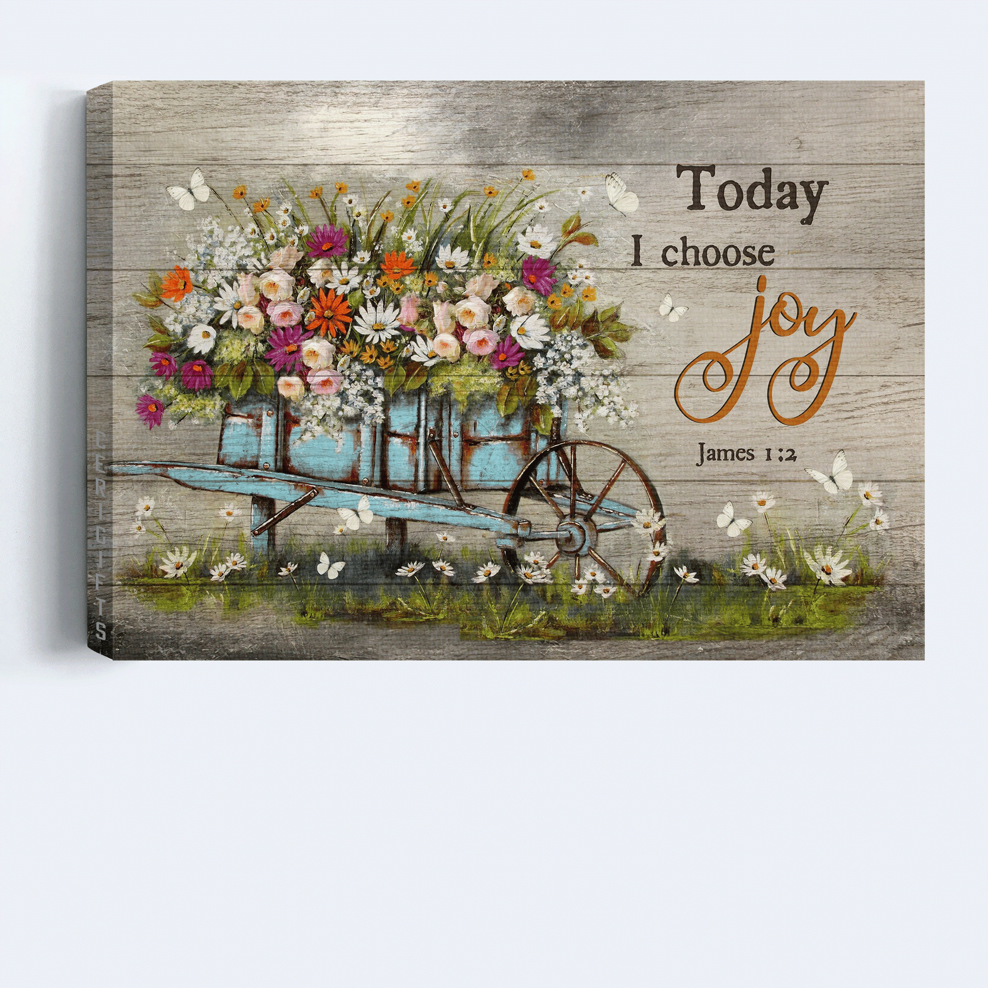 Jesus Landscape Canvas - Vintage Flower, Flower Wooden Cart Canvas - Gift For Christian - Today I Choose Joy Canvas Prints, Christian Wall Art is a wonderful picture which can be hung in any room in your house such as living room, bedroom, kitchen or even outdoor space.