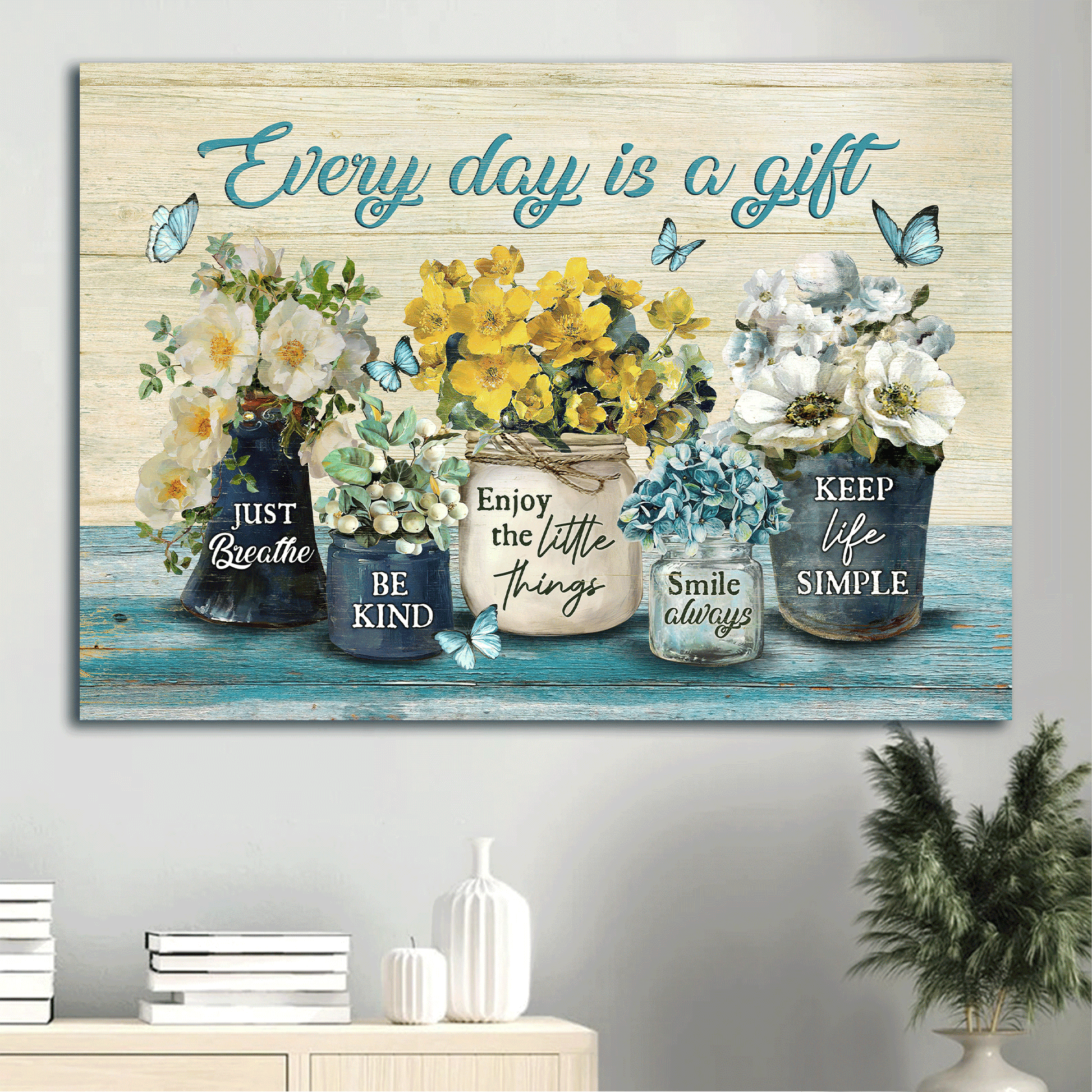 With gorgeous watercolor flower, lovely butterflies and inspiring quote, basic but stunning, this amazing Jesus Landscape Canvas - Vintage Flower, Vintage Painting Canvas - Gift For Christian - Every Day Is A Gift Canvas Prints, Wall Art will become a highlight feature in your house. Furthermore, five vases of flower contain five virtues that are God’s encouragement for you. This wonderful canvas is the perfect gift for not only your buddy, but also your partner and your family.