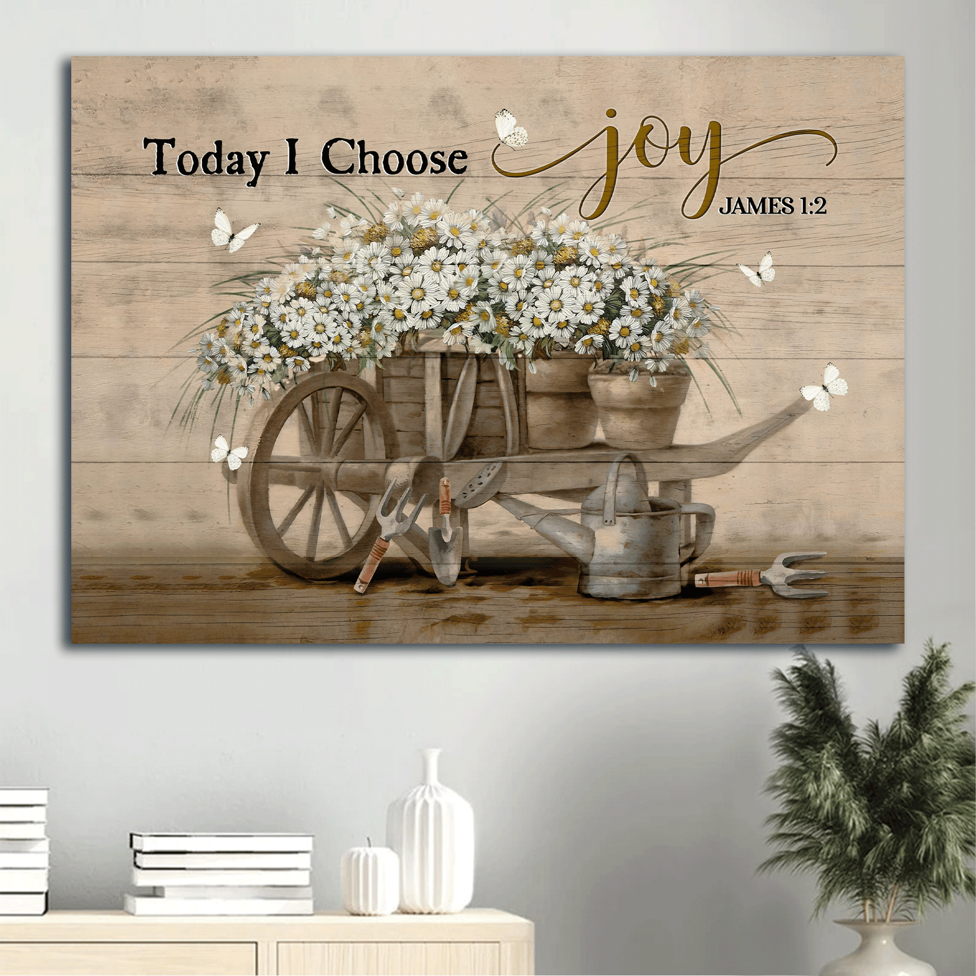 Jesus Landscape Canvas - Vintage Garden, Daisy Flower Canvas - Gift For Christian - Today I Choose Joy Canvas