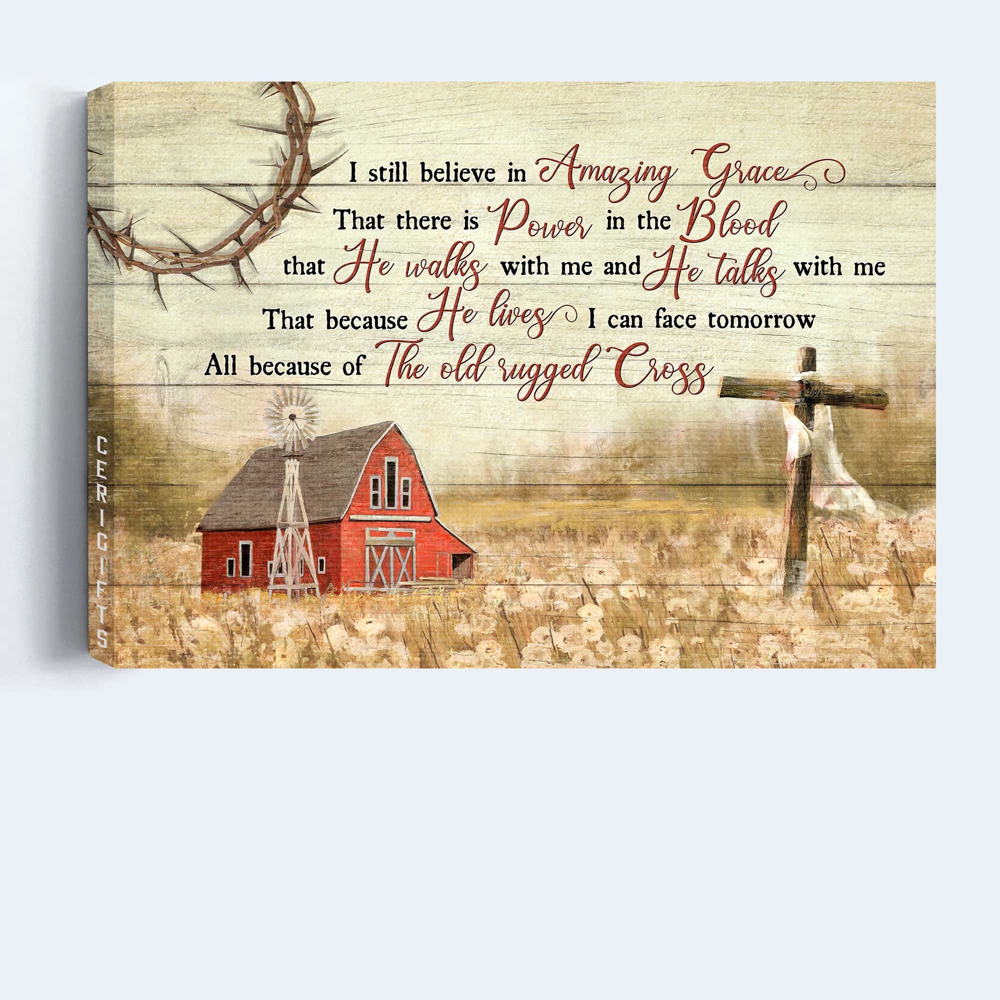 Do you want to add some joy to your living space? Then, this amazing Jesus Landscape Canvas - Vintage House Painting, Wooden Cross, Red Barn Canvas - Gift For Christian - I Still Believe In Amazing Grace Canvas Prints, Wall Art is the perfect option for you!