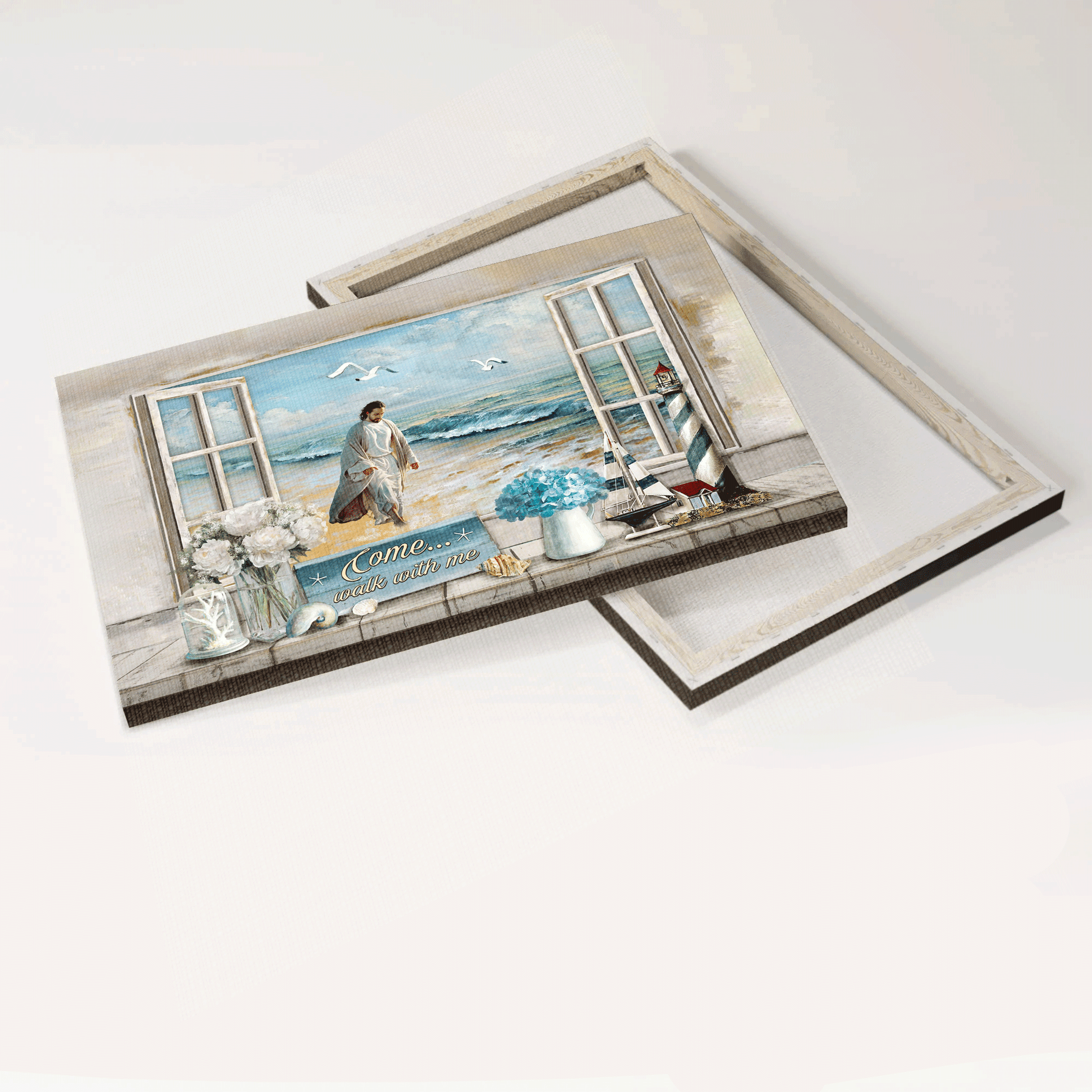 Jesus Landscape Canvas - Walking With Jesus, On The Seashore, Beach Painting, Window Frame Canvas - Gift For Christian - Come Walk With Me Canvas Prints, Christian Wall Art is a perfect gift for your friends, your lover and even your family, especially for those who are religious Christian.