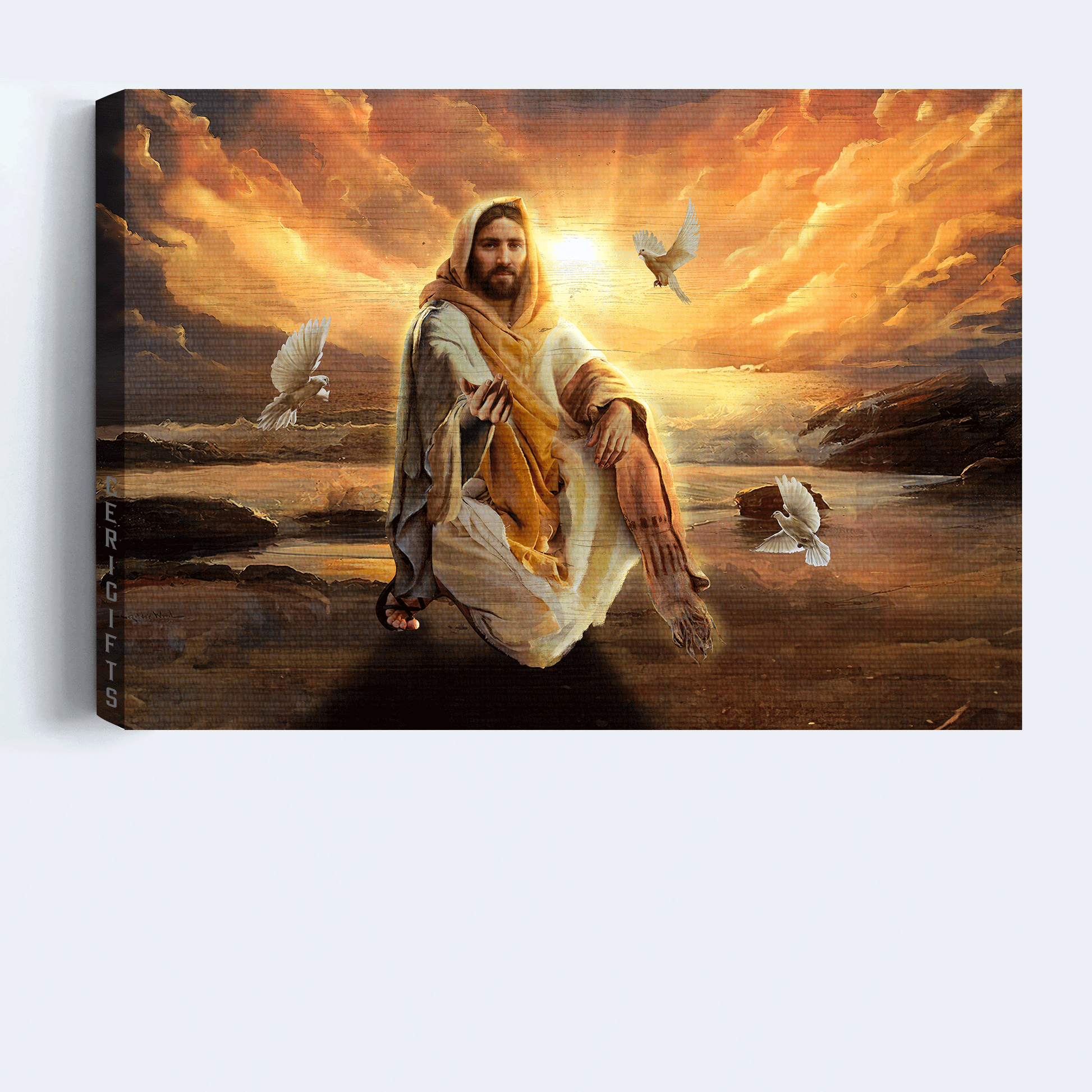 Jesus Landscape Canvas - Walking With Jesus, White Dove, Beautiful Sunset Canvas - Gift For Christian Canvas Prints, Christian Wall Art is a wonderful picture that can be hung in any room in your house, such as the living room, bedroom, kitchen, or even outdoor space.