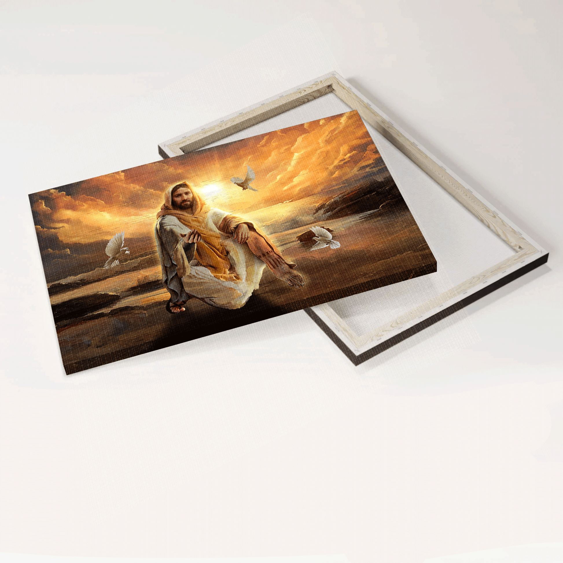 Jesus Landscape Canvas - Walking With Jesus, White Dove, Beautiful Sunset Canvas - Gift For Christian
