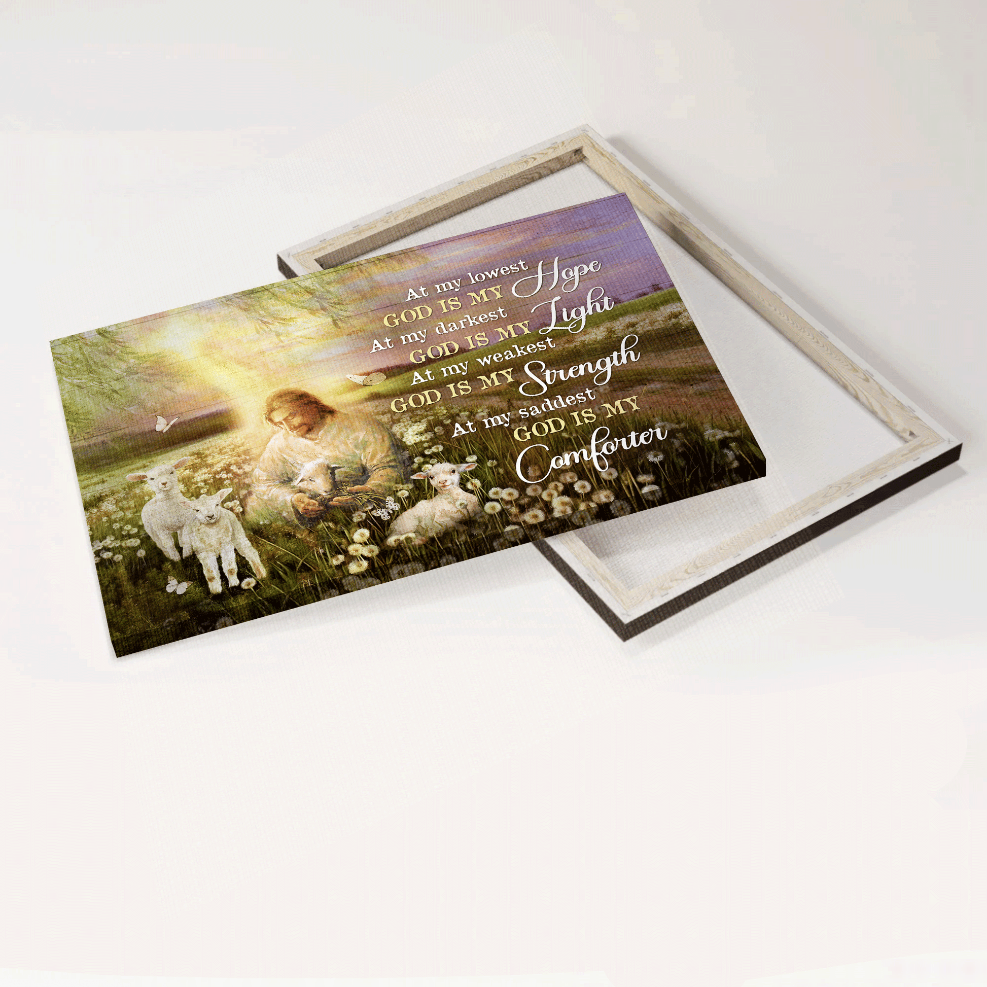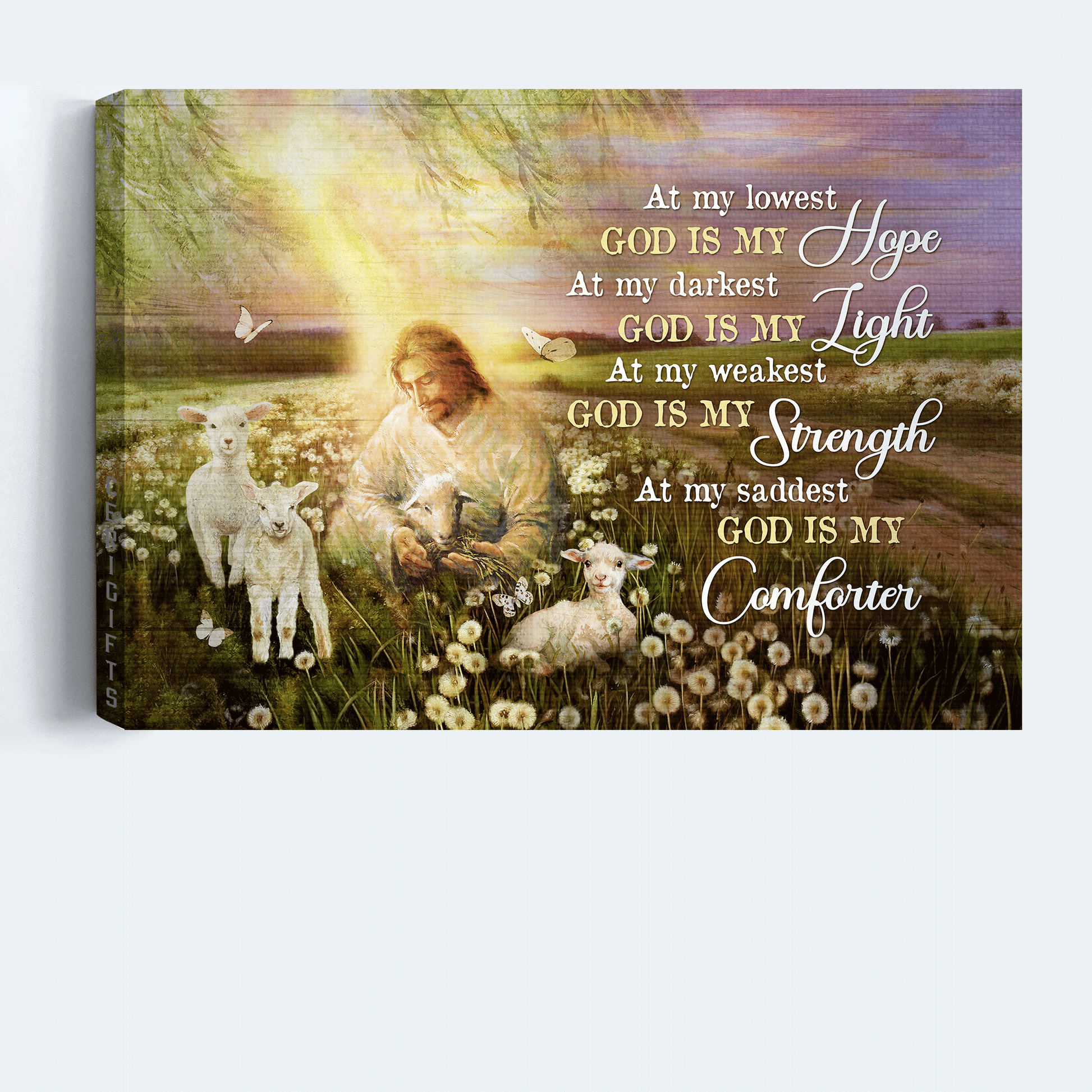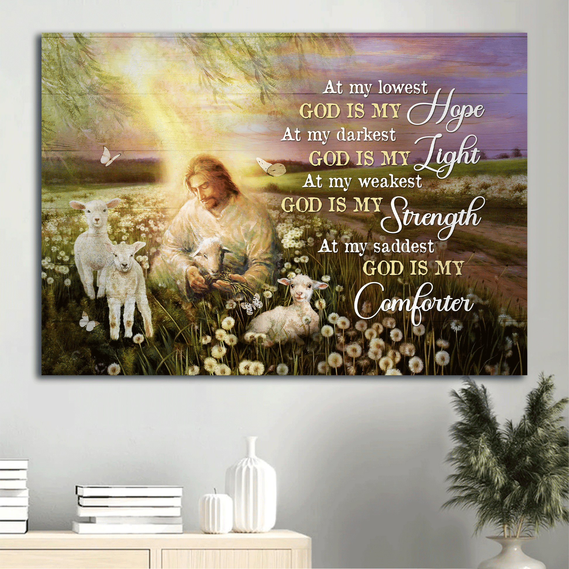Jesus Landscape Canvas - Walking With Jesus, White Lamb, Dandelion Field Canvas - Gift For Christian - God Is My Hope Canvas