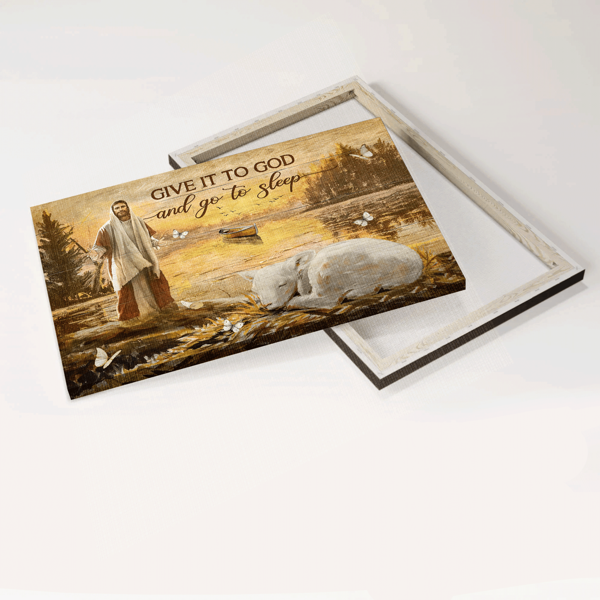 Jesus Landscape Canvas - Watercolor Lamb, Magic Lake, The Life Of Jesus Canvas - Gift For Christian - Give It To God And Go To Sleep Canvas