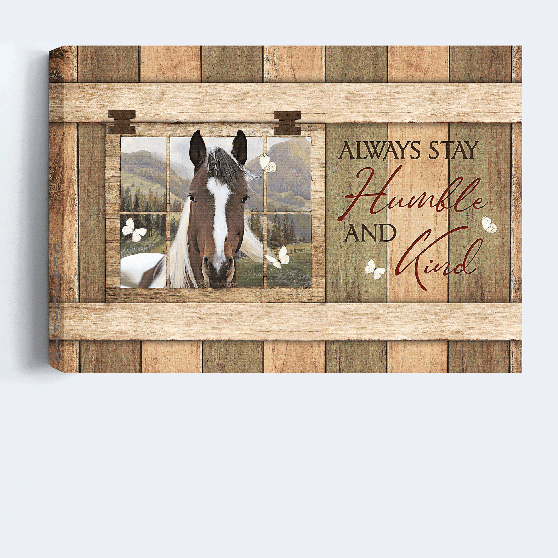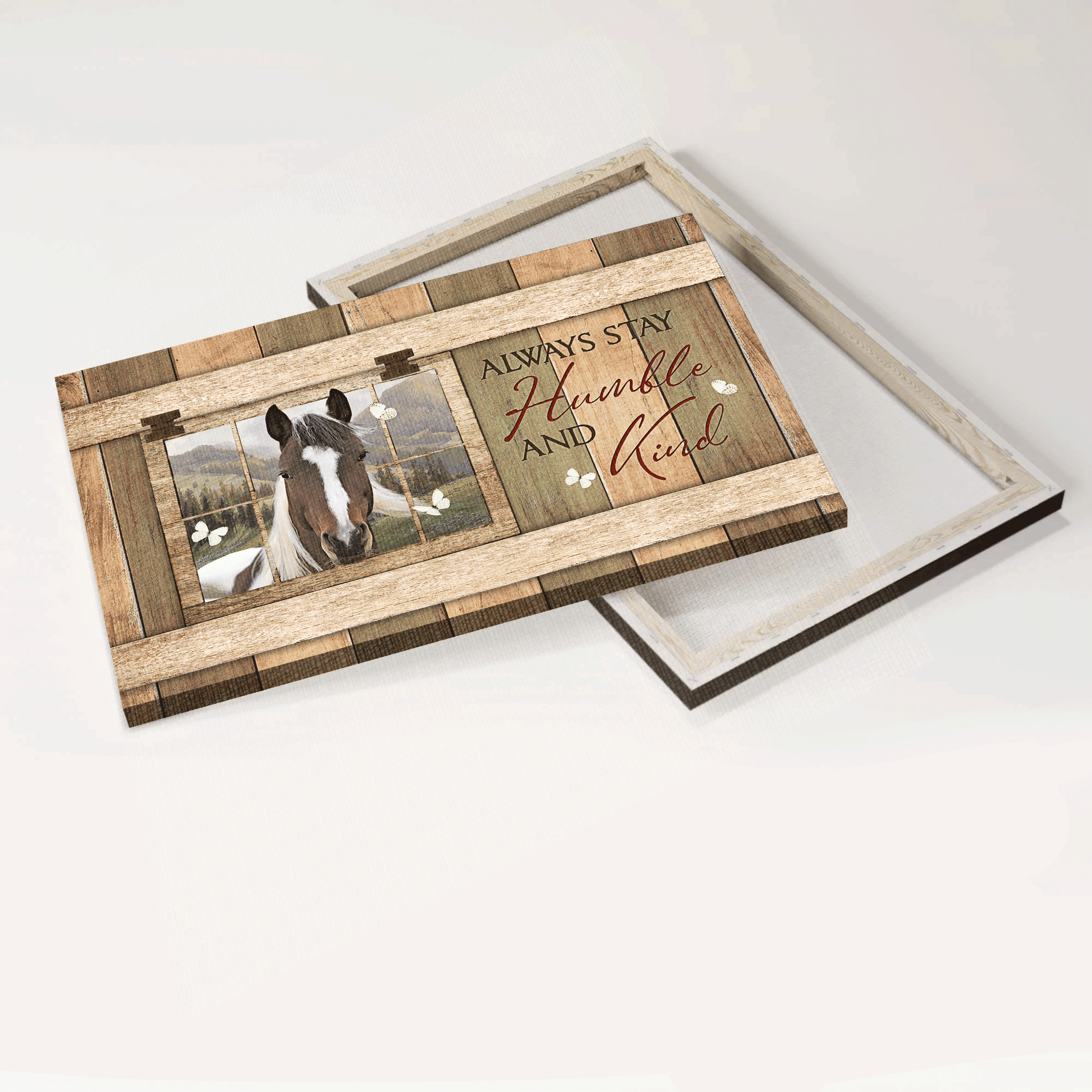 Do you want to add some joy to your living space? Then, this amazing Jesus Landscape Canvas - White And Brown Horse, Countryside Painting, Butterfly Canvas - Gift For Christian - Always Stay Humble And Kind Canvas Prints, Wall Art is the perfect option for you!