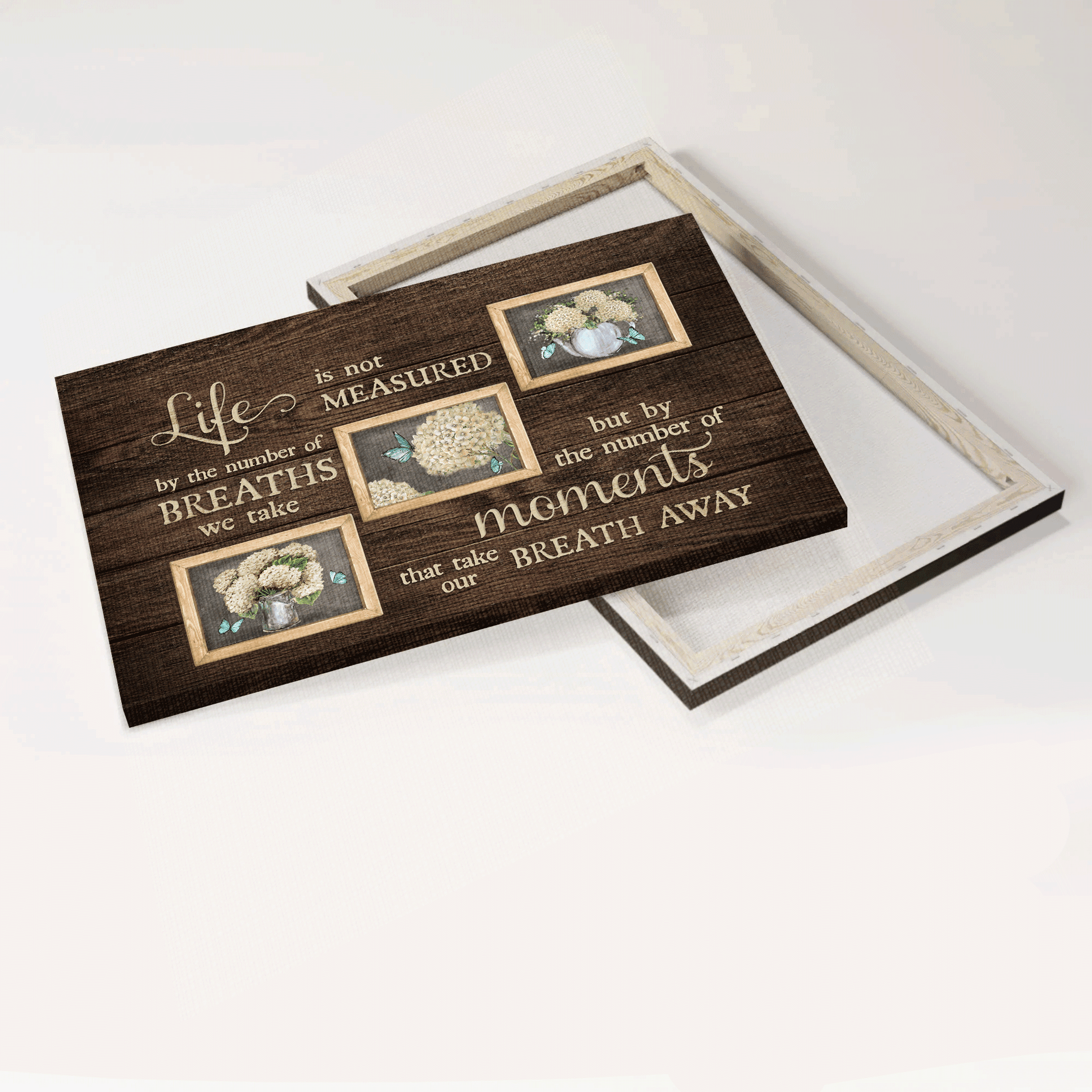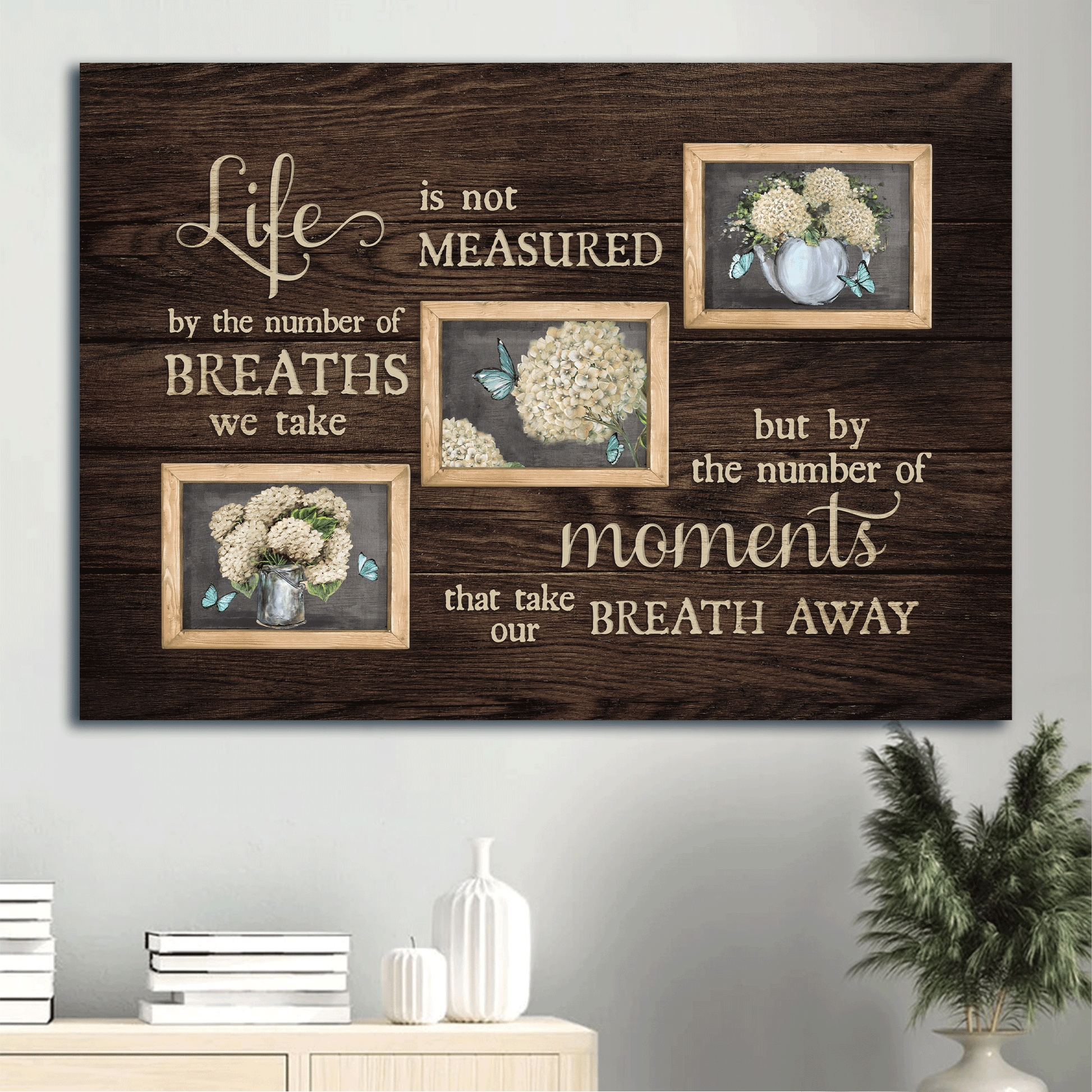 This wall art is definitely a perfect gift for your friend and your family. Jesus Landscape Canvas - White Hydrangea Drawing, Small Window Canvas - Gift For Christian - Life Is Not Measured Canvas Prints, Christian Wall Art matches well with a variety of wall decor styles and rooms.
