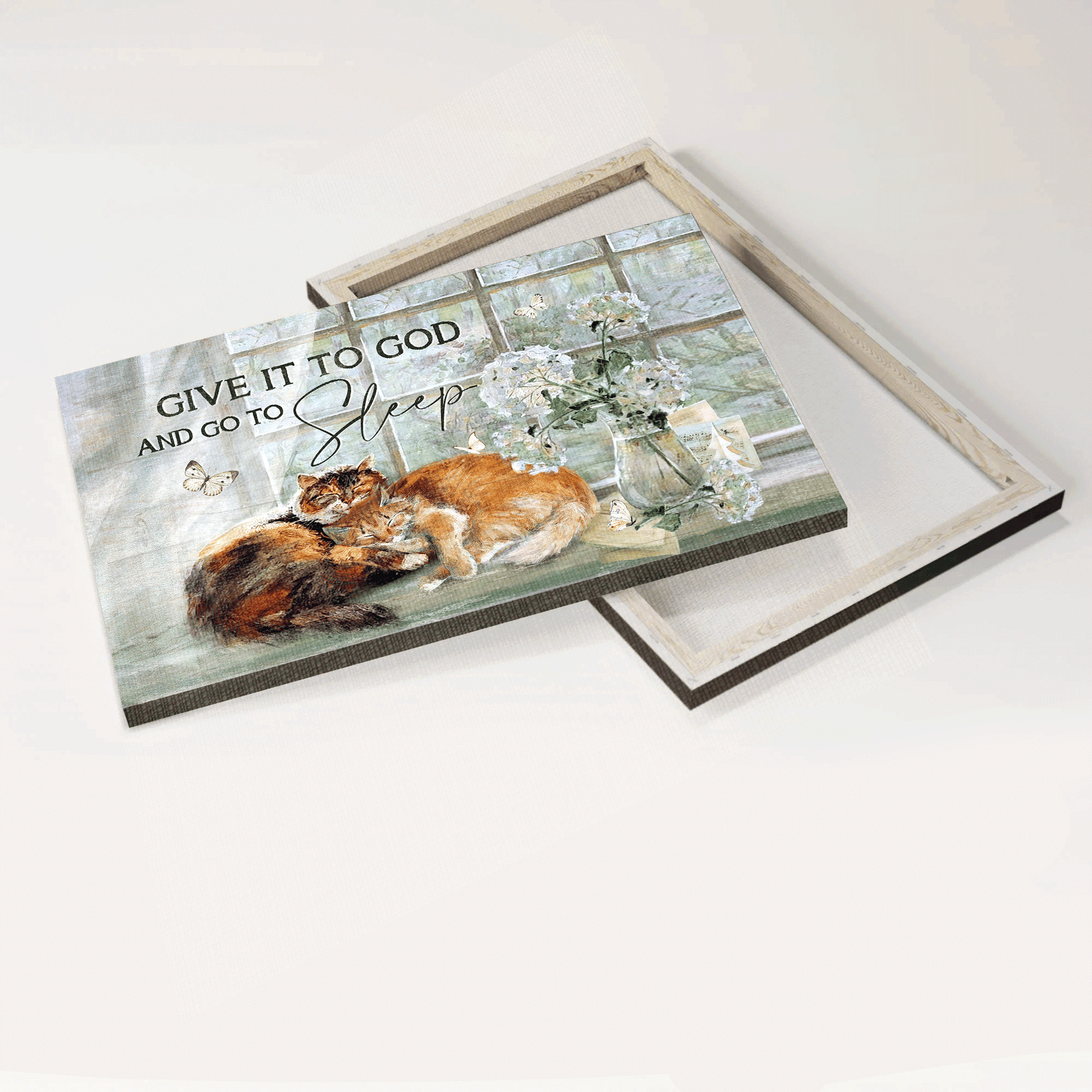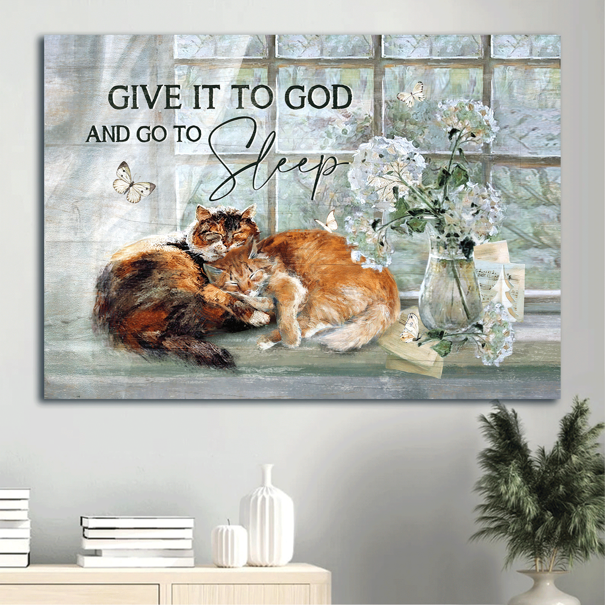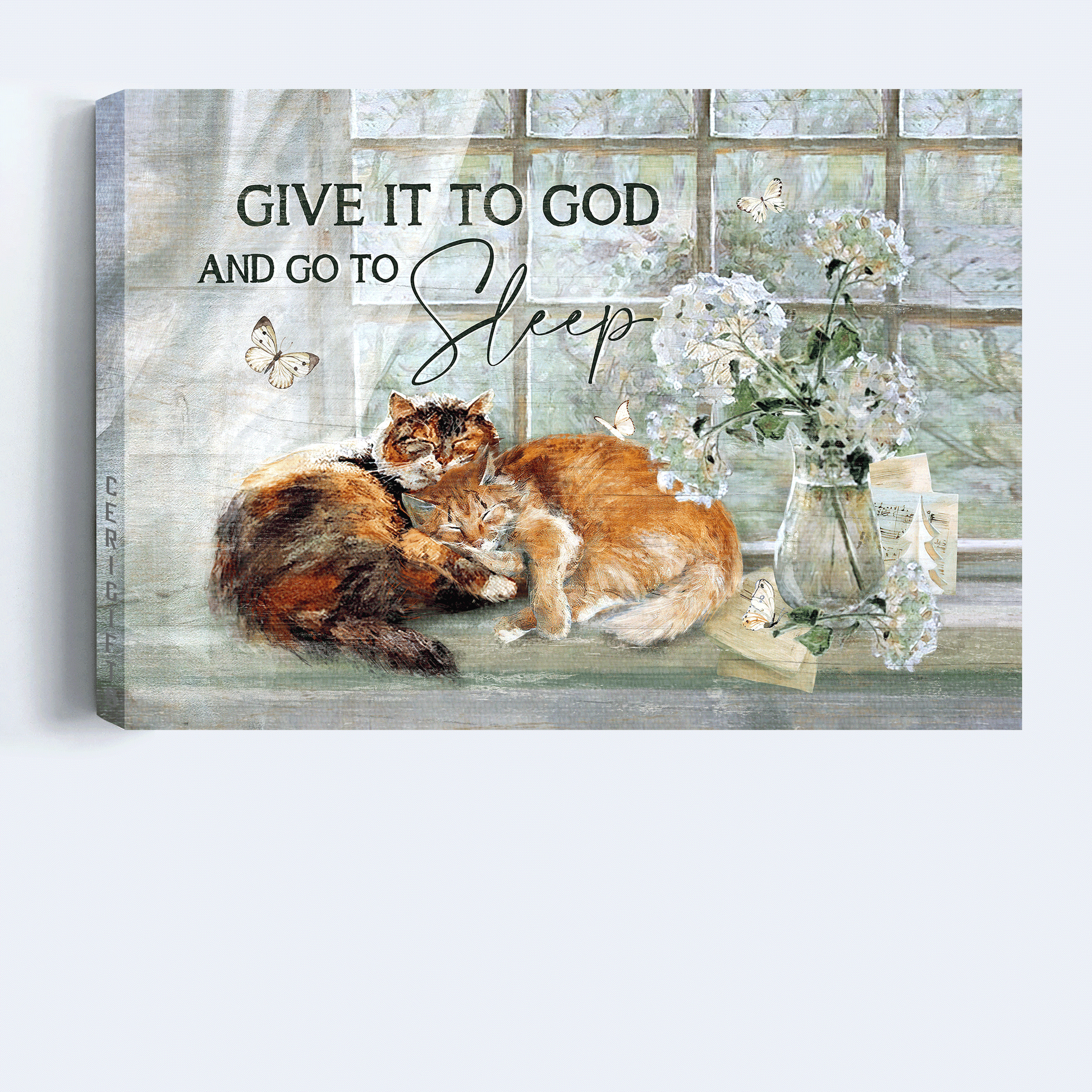 The image of the sleeping cat with white flower and meaningful quotes of this amazing Jesus Landscape Canvas - White Hydrangea, Sleeping Cat, Spring Garden Canvas - Gift For Christian, Cat Lovers - Give It To God Canvas Prints, Wall Art will definitely be a meaningful gift not only for your friend but also for your lover and your family. This wonderful canvas will be suitable for any room in your house from the kitchen, bedroom, and living room to outside space.