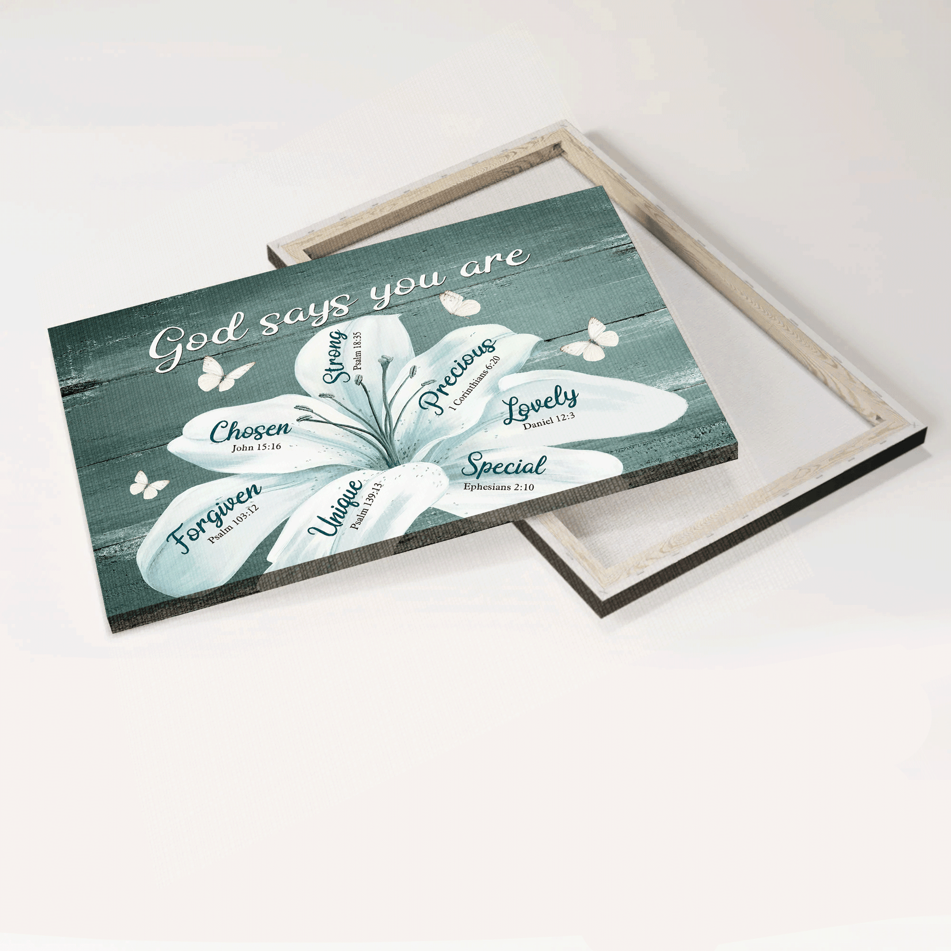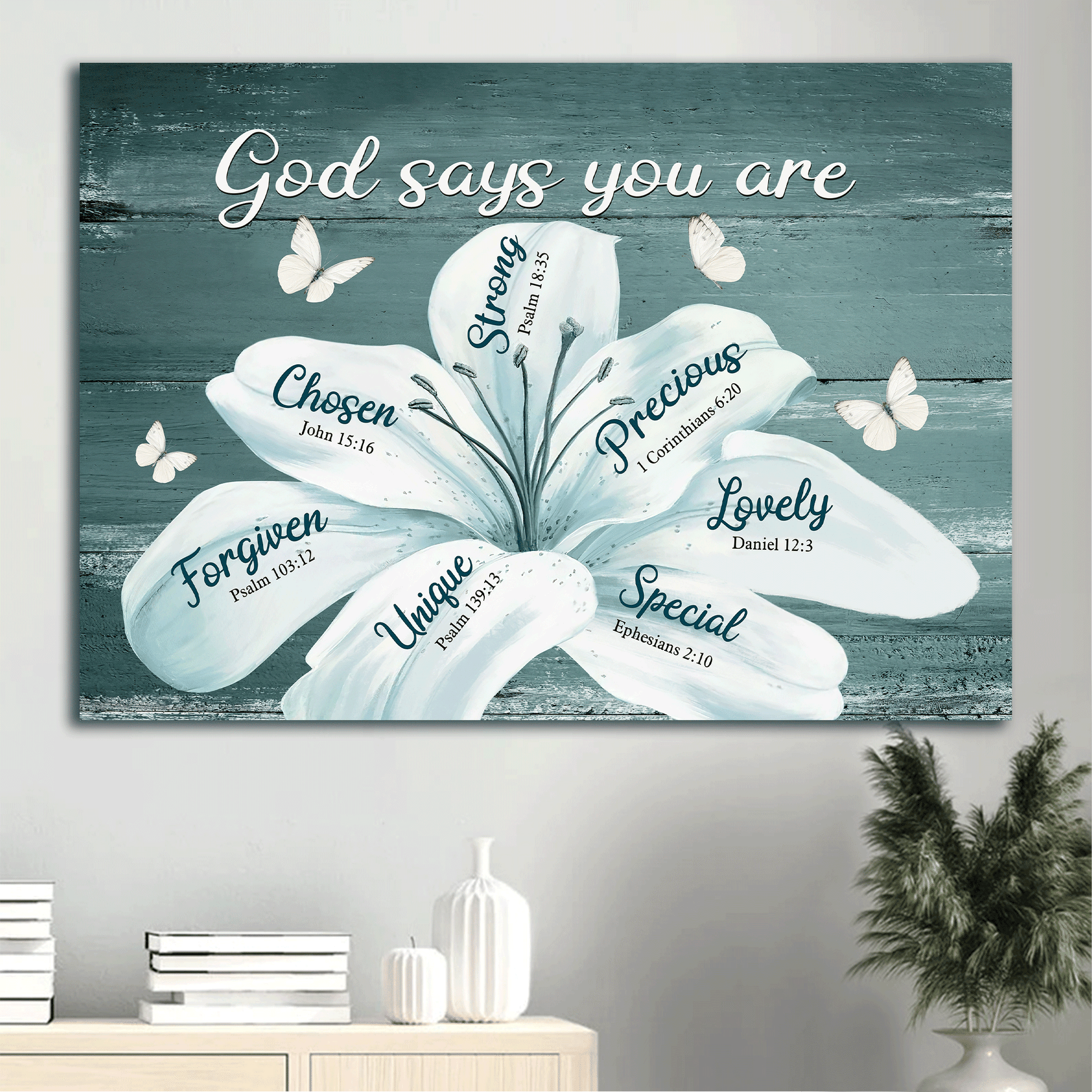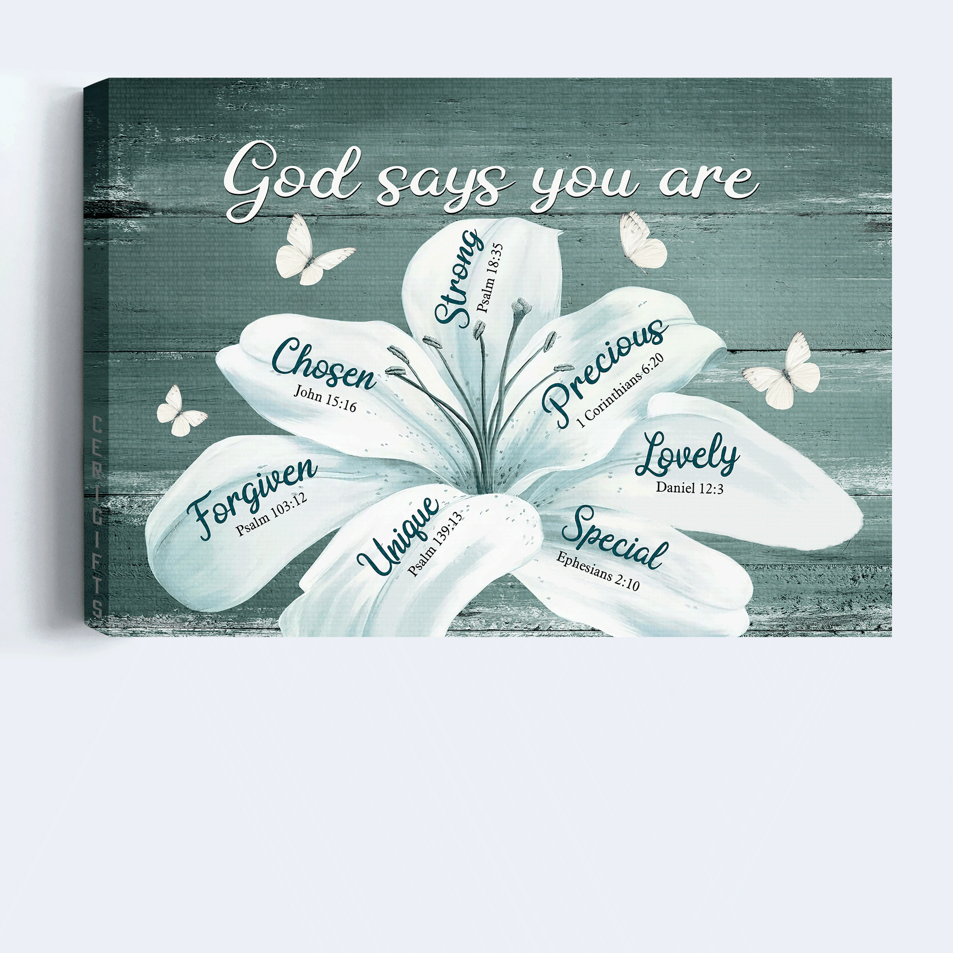 Jesus Landscape Canvas - White lily flowers, White Butterfly, Flower painting canvas - Gift For Christian - God says you are canvas
