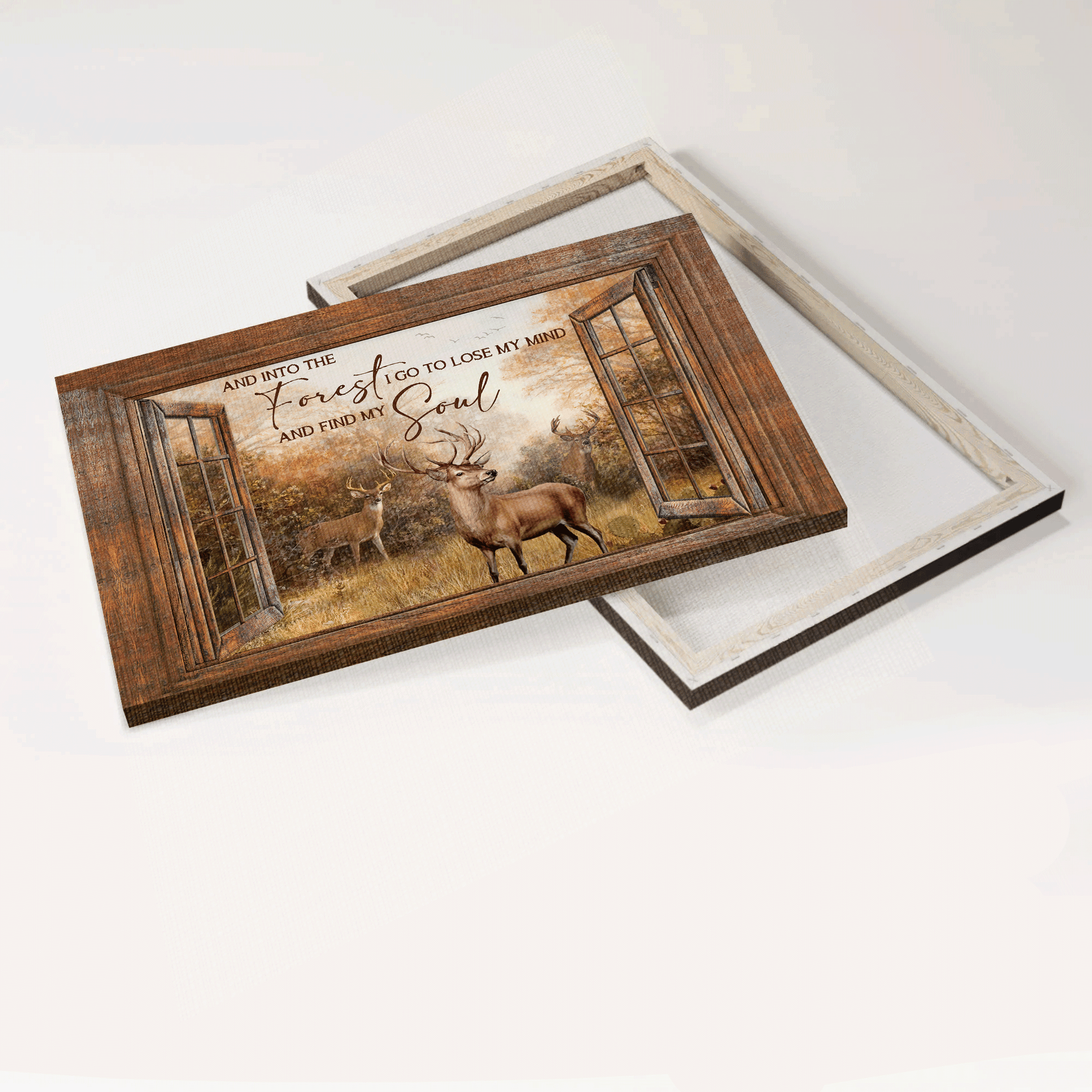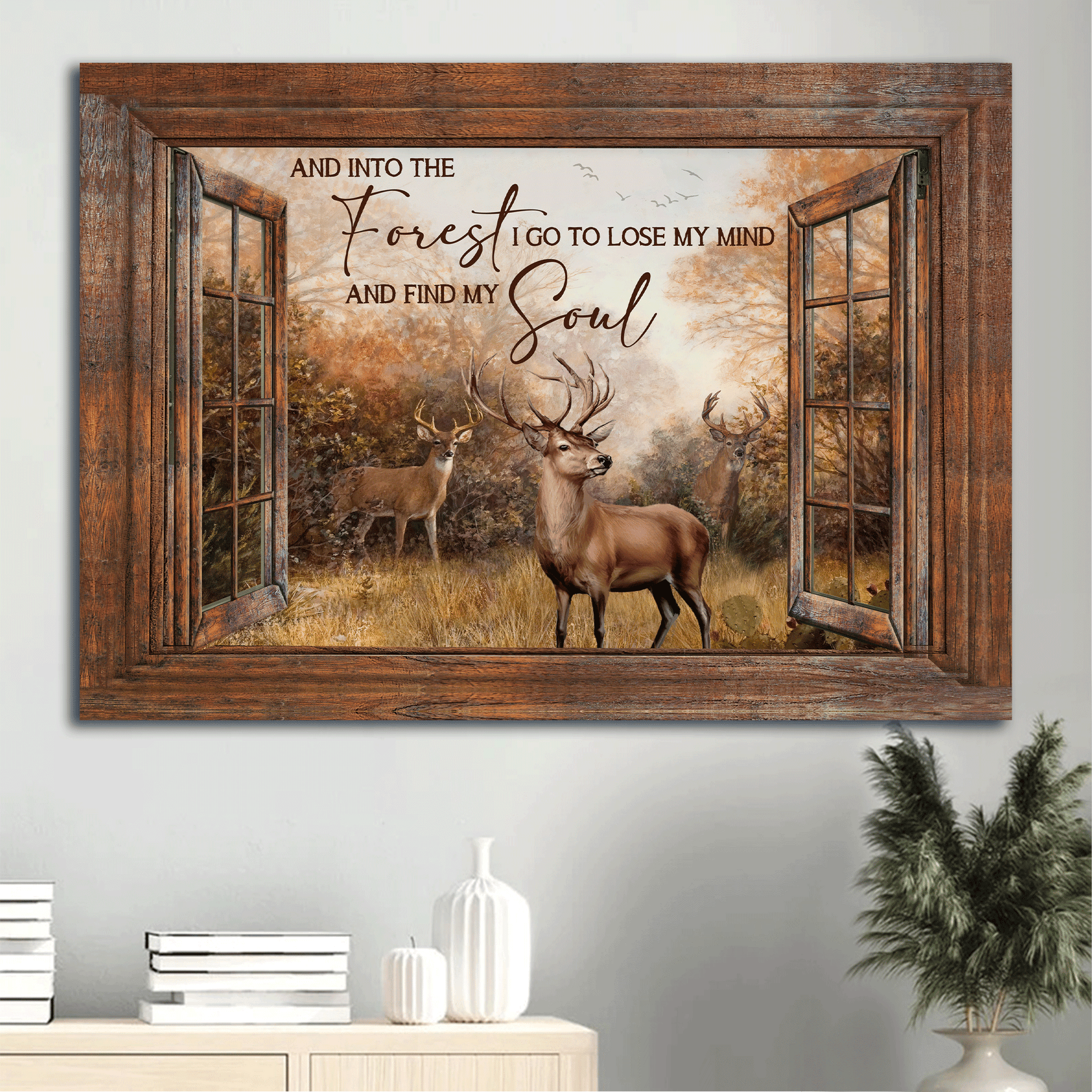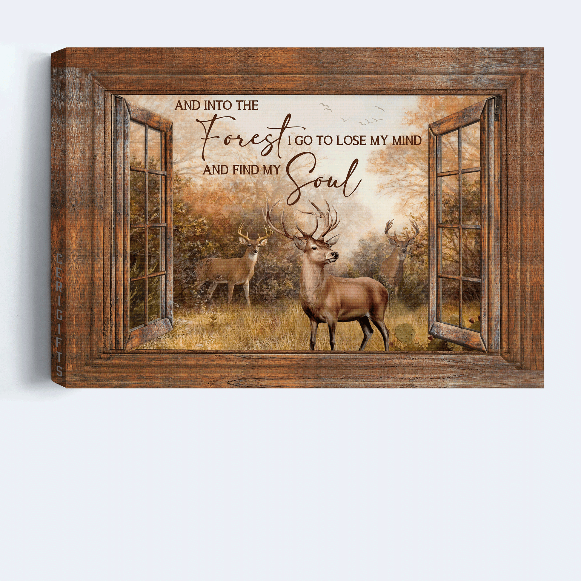 Jesus Landscape Canvas - Window Frame, Forest Drawing, Deer Painting Canvas - Gift For Christian - Into The Forest I Go Canvas
