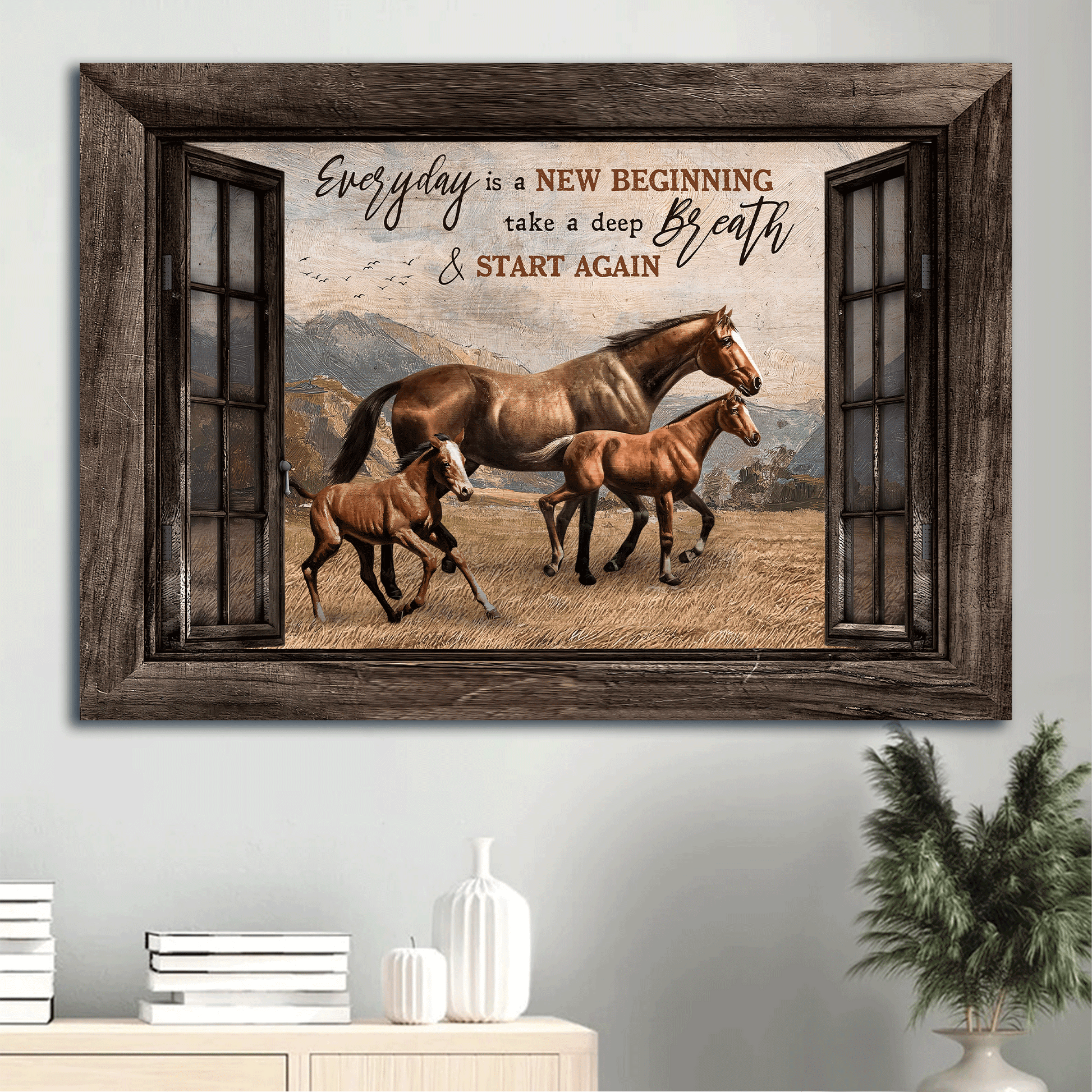 Jesus Landscape Canvas - Window Frame, Horse Painting, Running In Grassland Canvas - Gift For Christian - Every Is A New Beginning Canvas Prints, Christian Wall Art suits any room in your house from kitchen, bedroom, bathroom to living room.