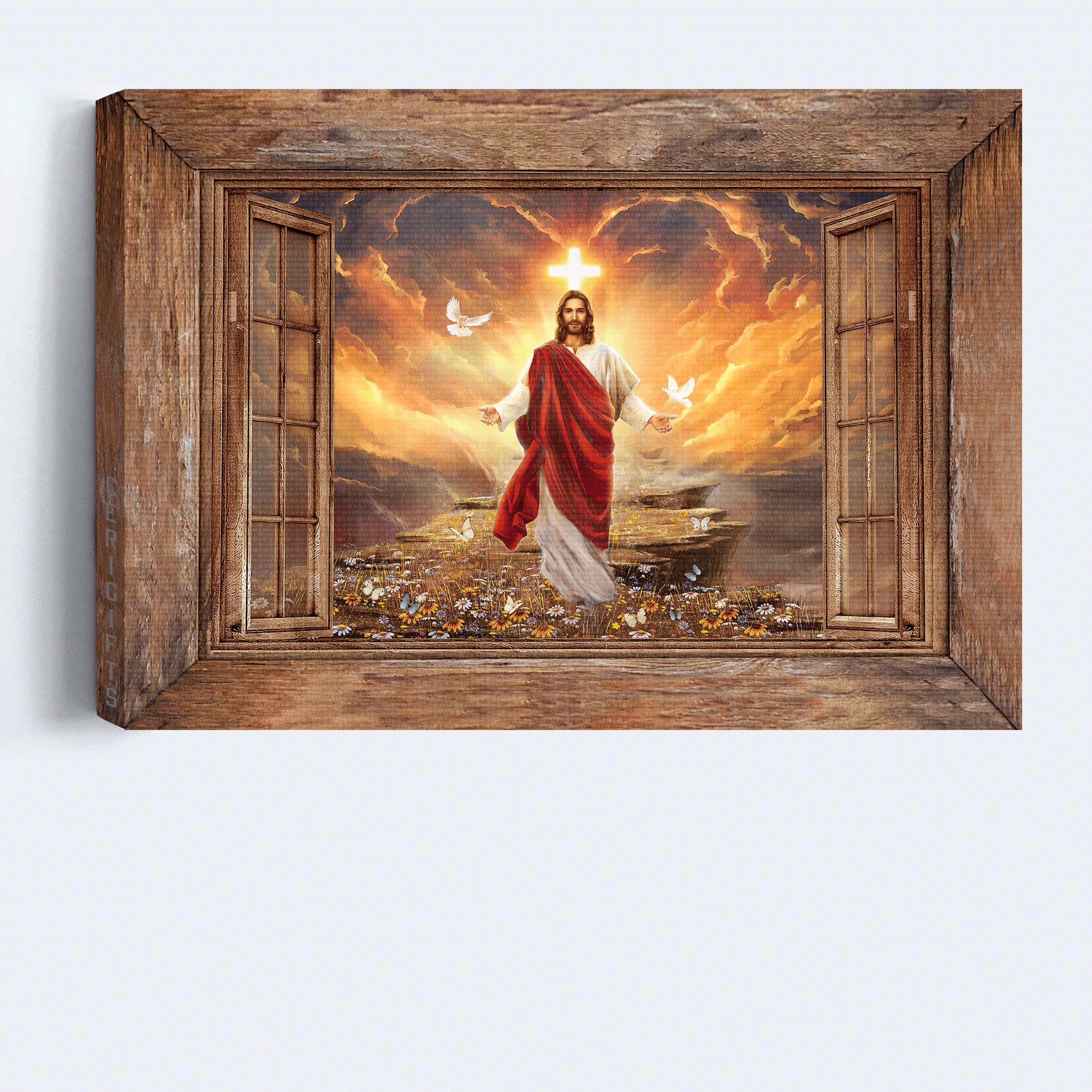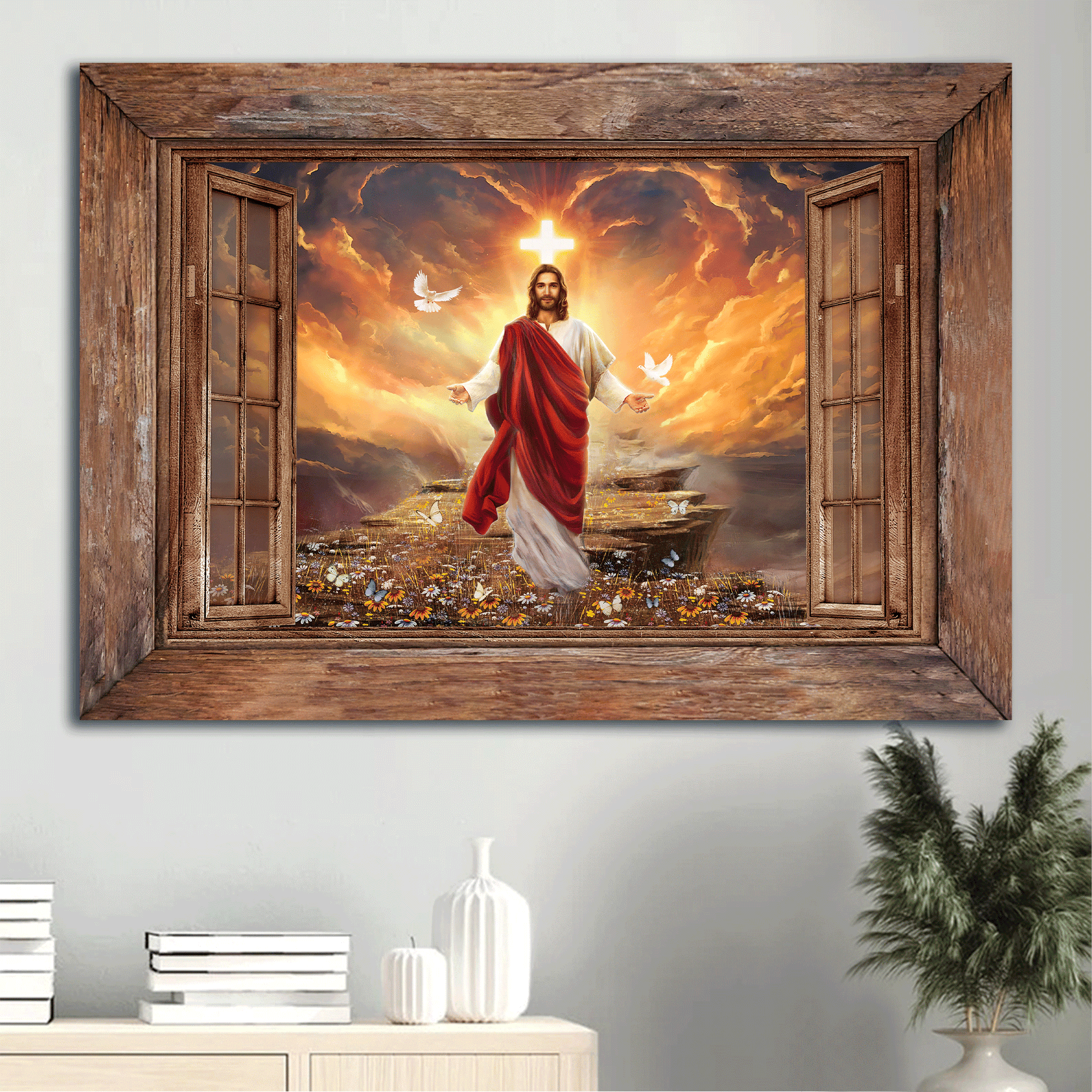 Jesus Landscape Canvas - Window Frame, Sunset Painting, Path To Heaven, Jesus Painting Canvas - Gift For Christian - Into The Arms Of Jesus Canvas Prints, Christian Wall Art is suitable for any room in your house.