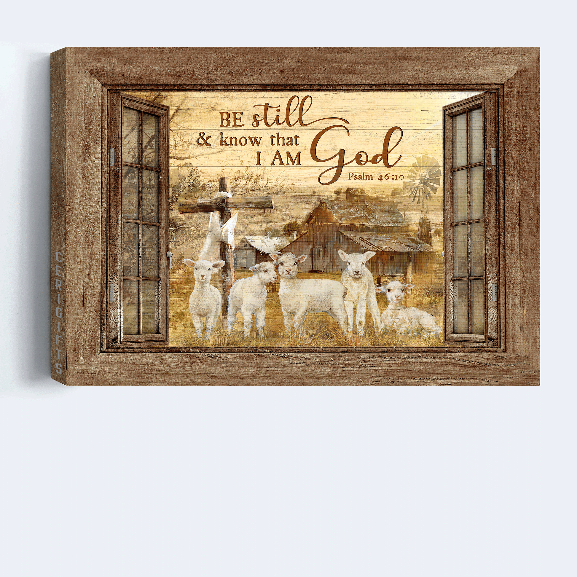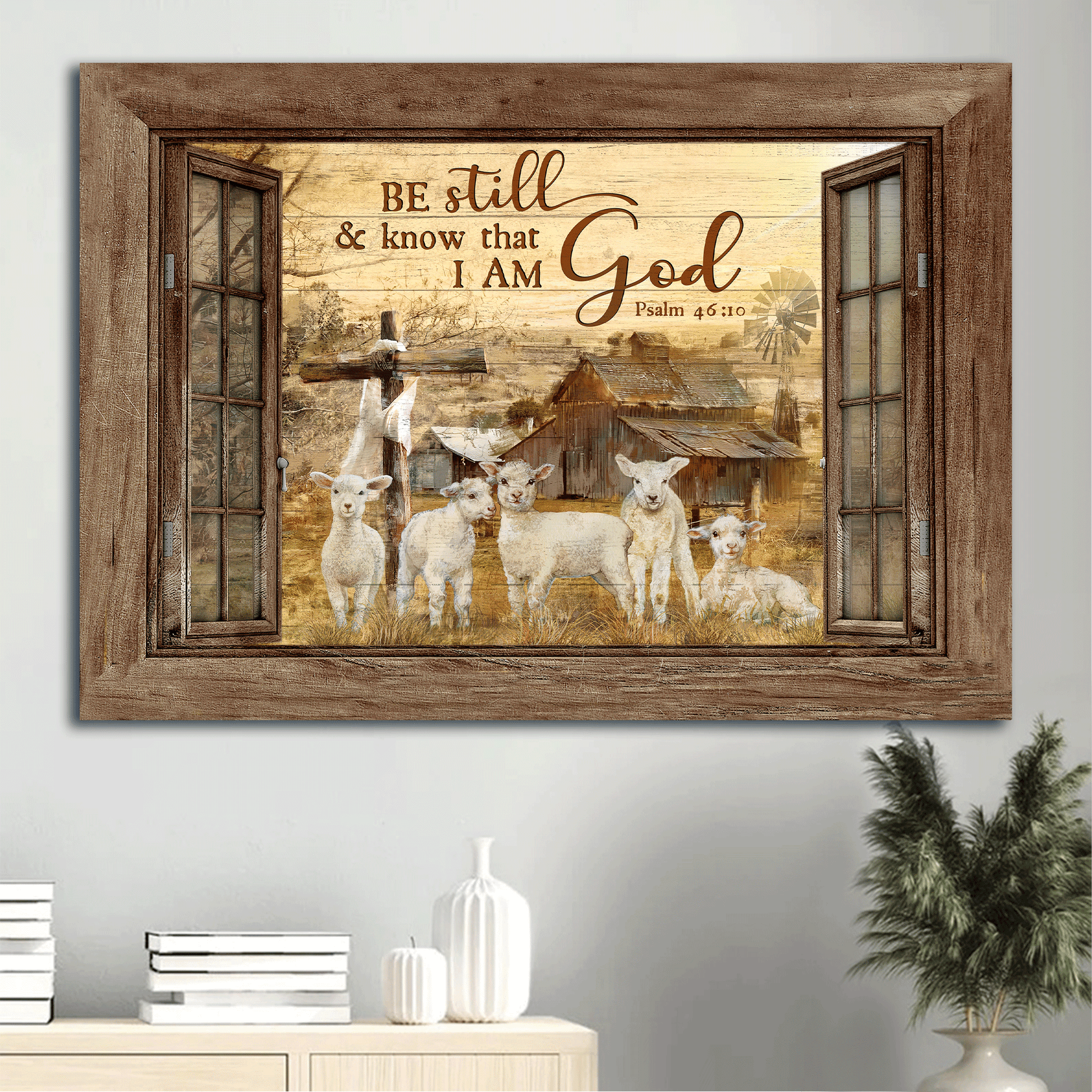 Jesus Landscape Canvas - Window Frame, The Lambs Of God, Old Barn Painting Canvas - Gift For Christian - Be Still & Know That I Am God Canvas Prints, Wall Art suits any room in your house from kitchen, bedroom, bathroom to living room.