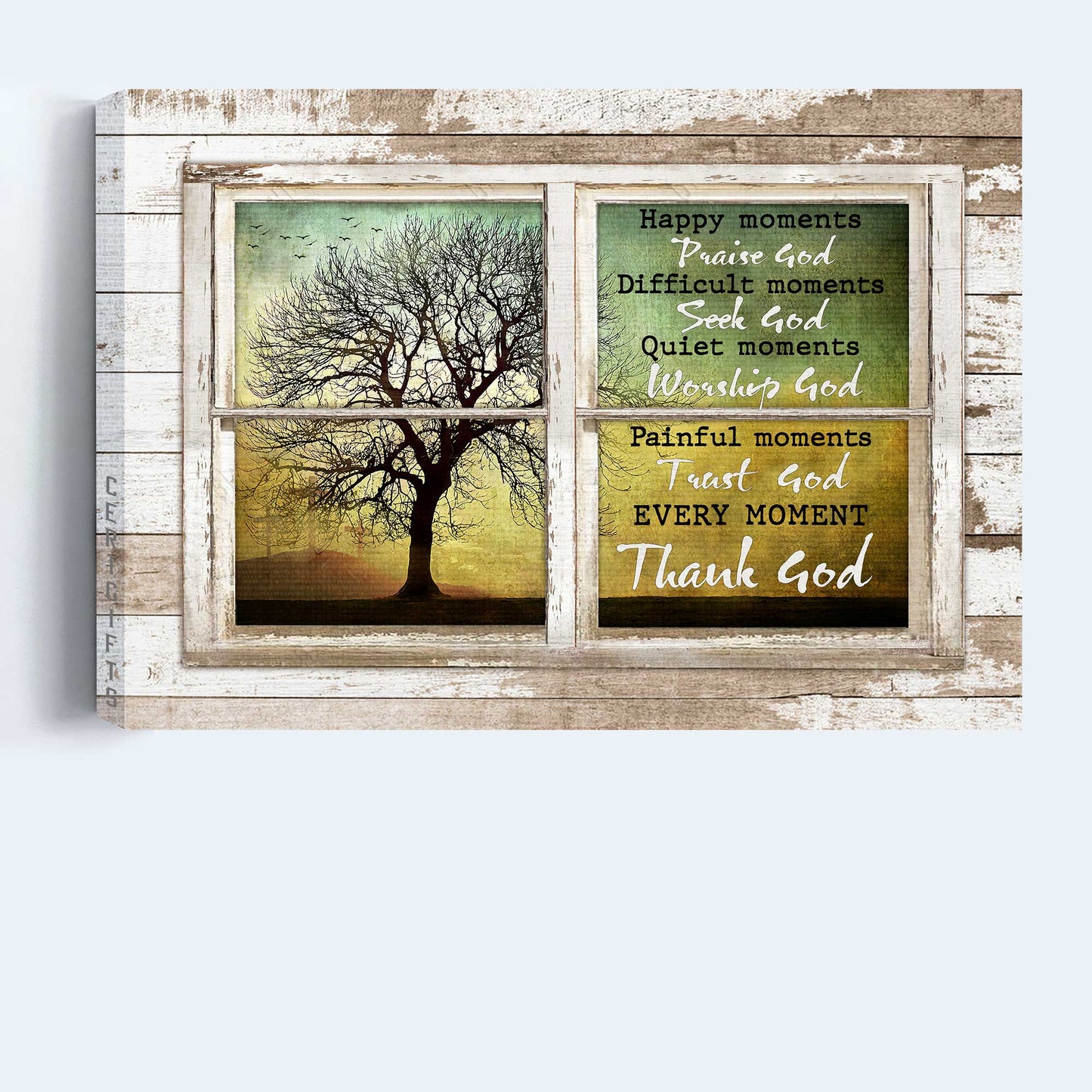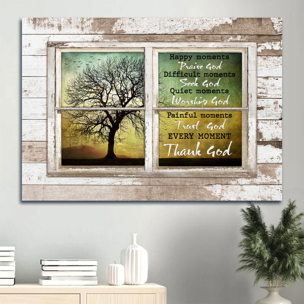 Jesus Landscape Canvas - Window Frame, Tree, Cross Canvas - Gift For Christian - Every Moment Thank God Canvas