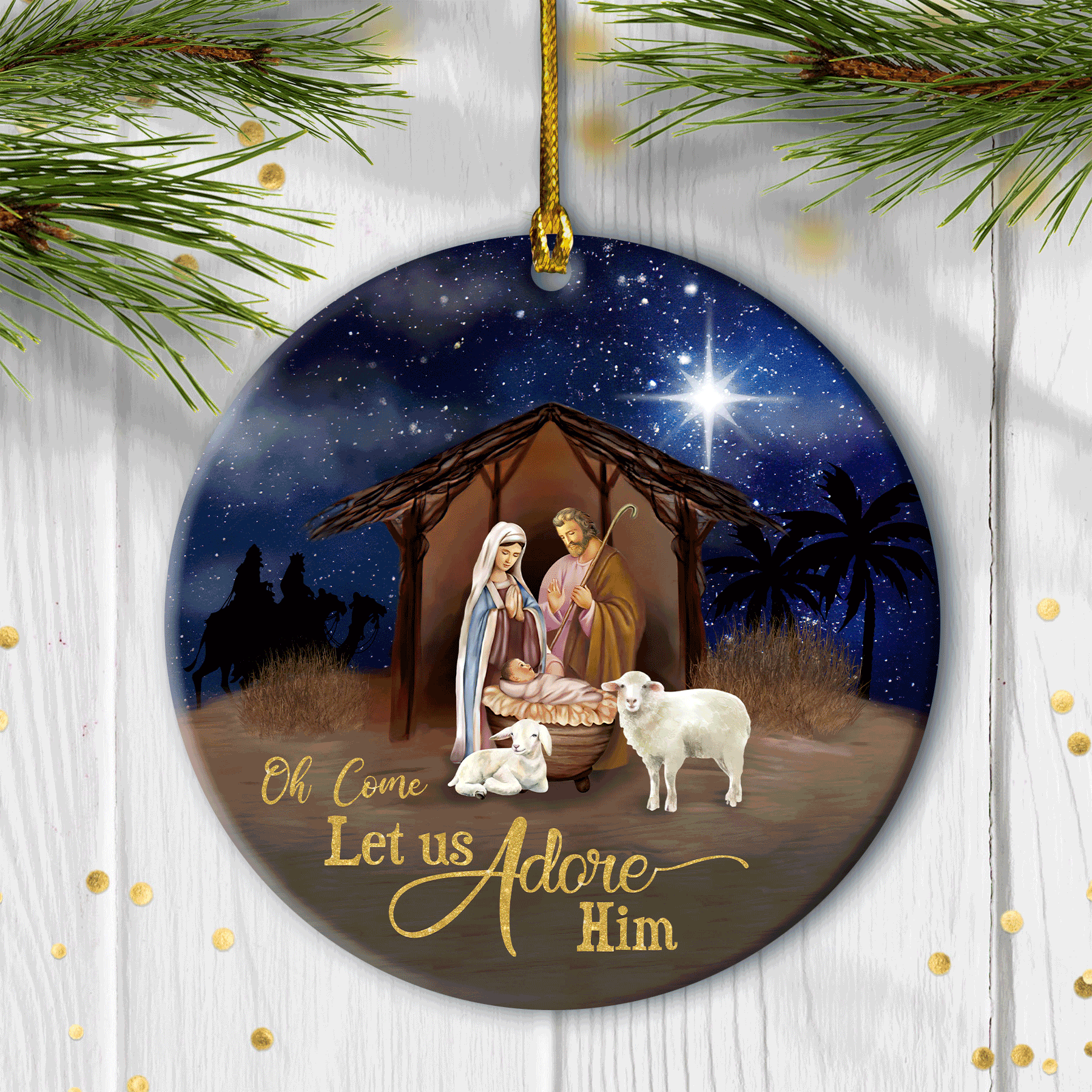 Jesus - Circle Ceramic Ornament - Let Us Adore Him - Jesus, God, Faith Painting - Gift For Religious Christian