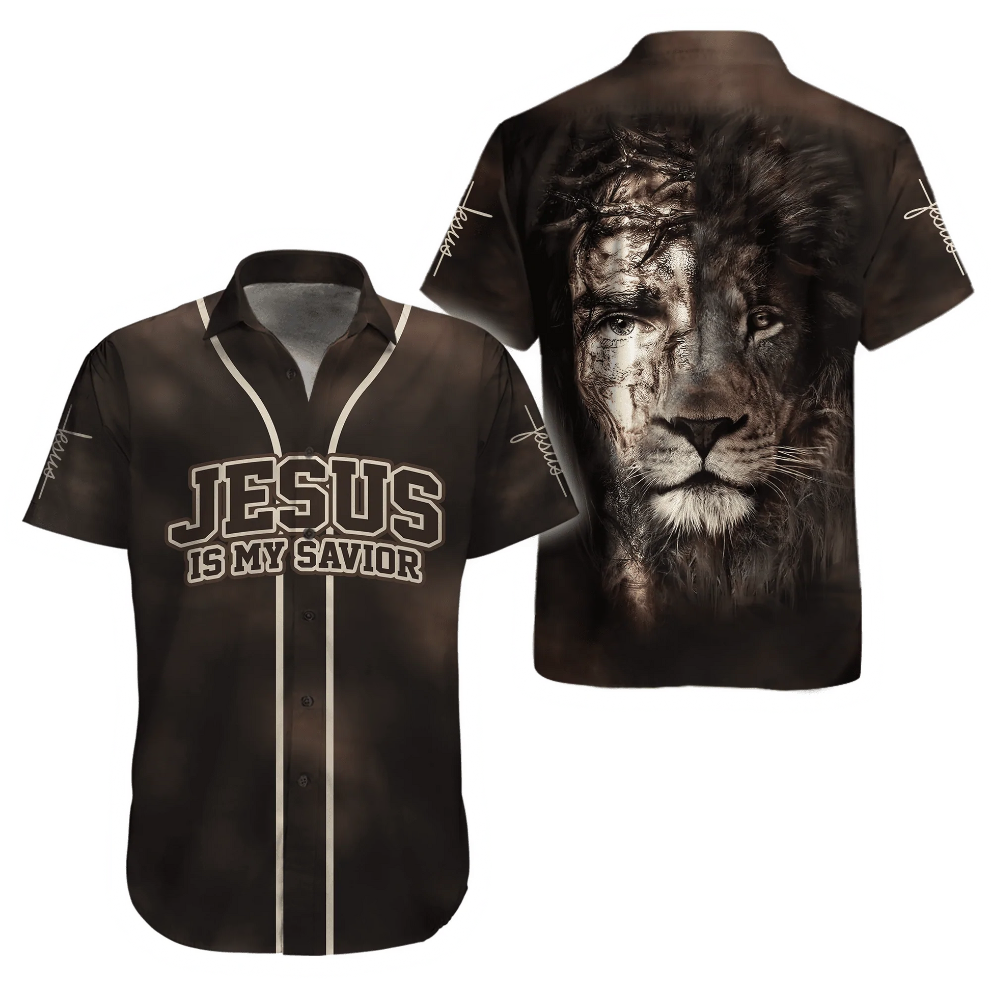 Jesus Lion Face Printed 3D Hawaiian Shirt for Men and Women.