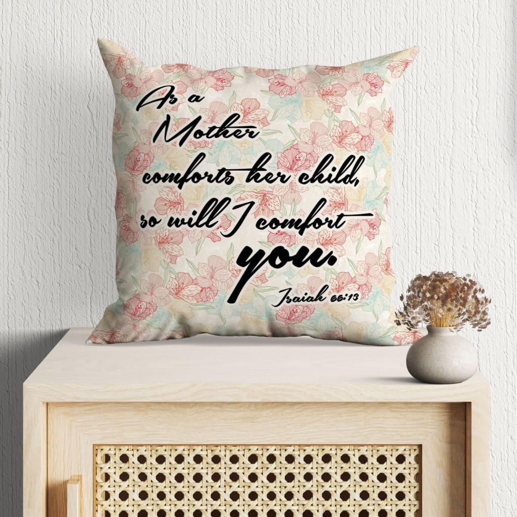 Jesus Pillow - As a mother comforts her child Isaiah 66:13 Bible verse pillow