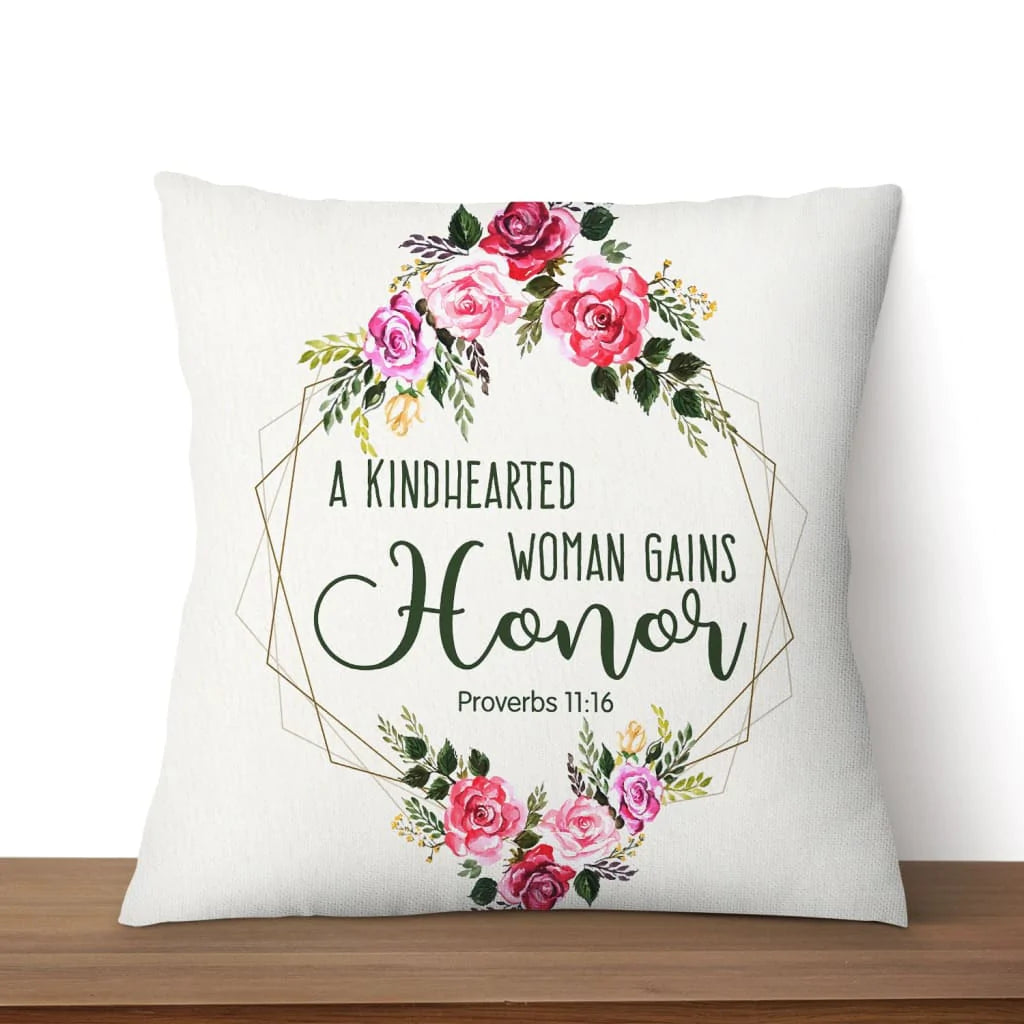 Jesus Pillow - Flower Frame Pillow - Gift For Christian - Proverbs 11:16 A kindhearted woman gains honor Throw Pillow