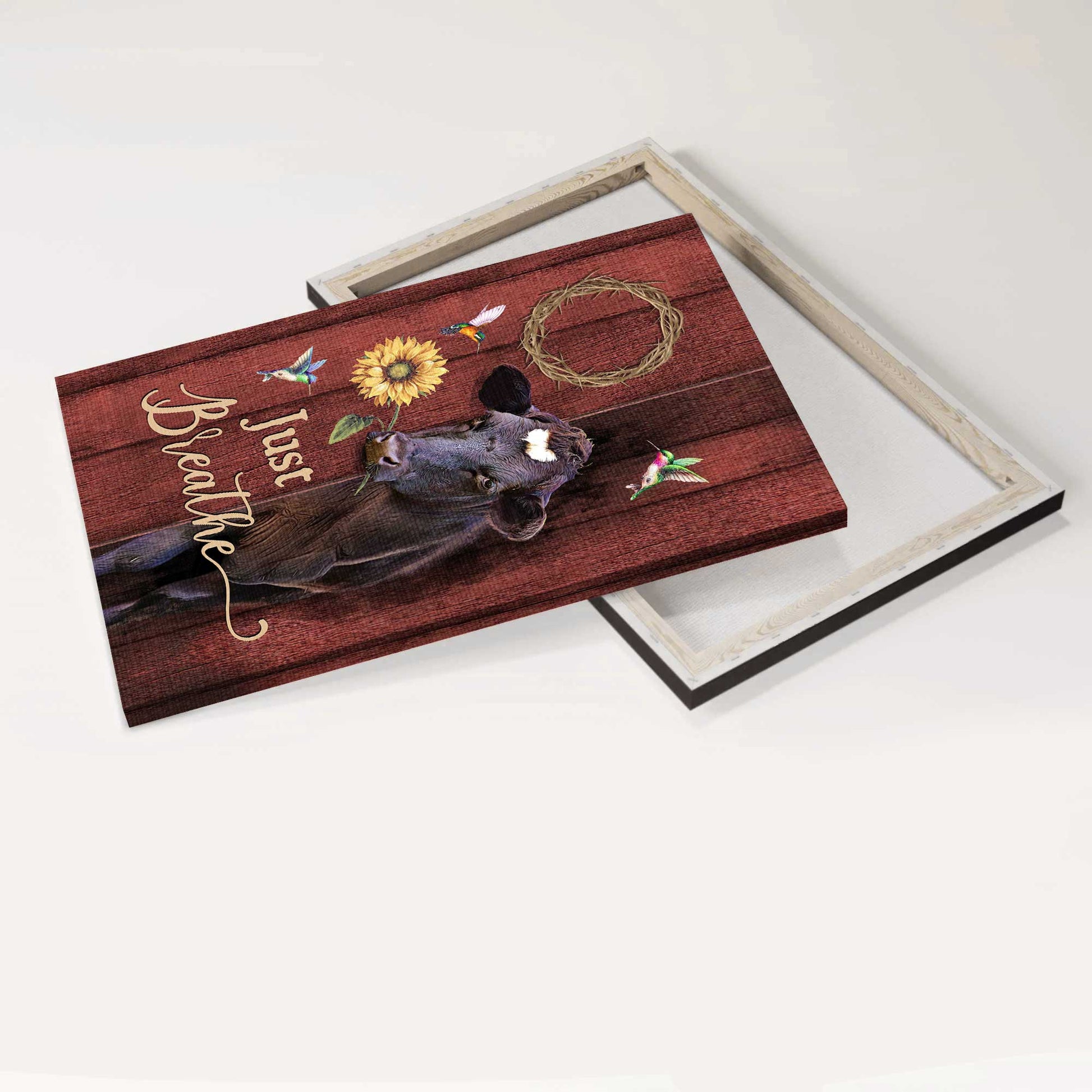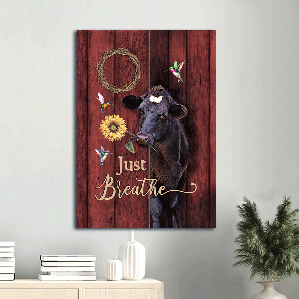 Jesus Portrait Canvas - Angus cow, Sunflower, Life on farm, Crown of thorns Portrait Canvas - Gift For Christian - Just breath