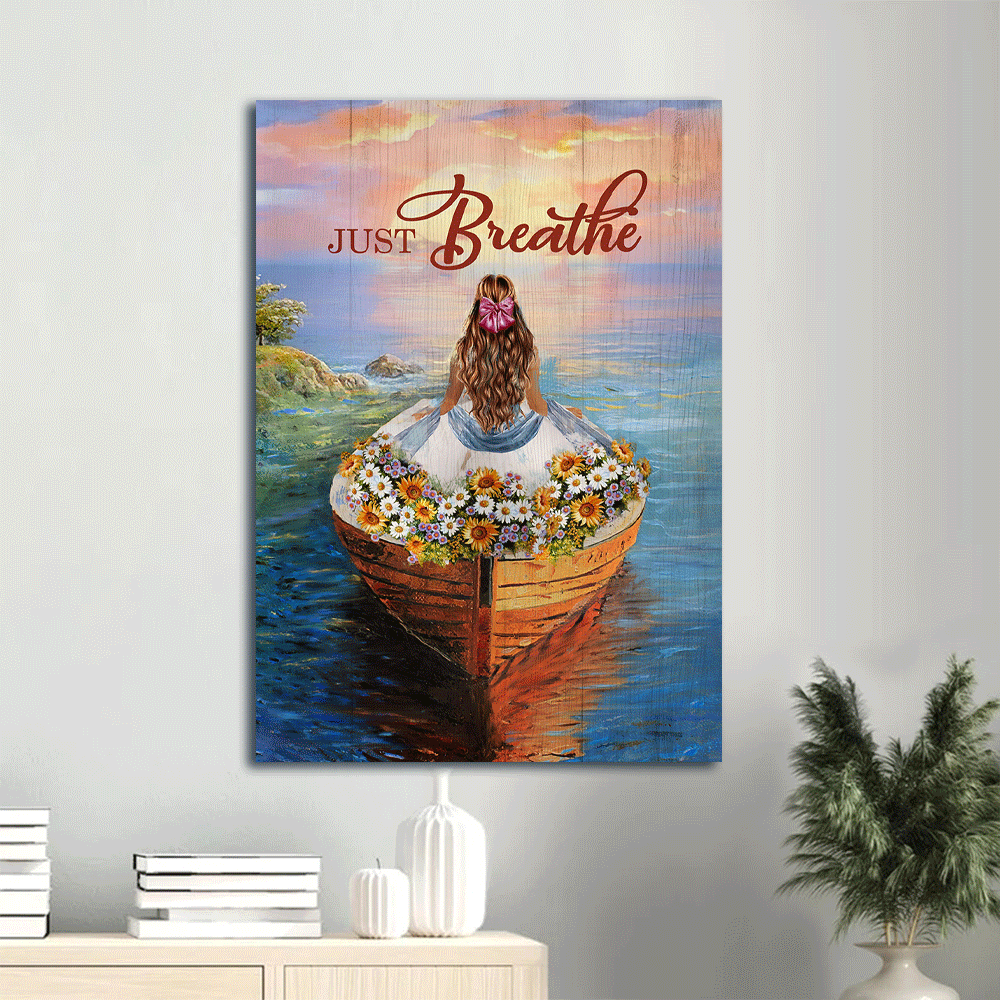 Jesus Portrait Canvas- Amazing boat, Watercolor flower, Elegant girl, Beautiful sunset Portrait Canvas- Gift For Christian- Just breathe.