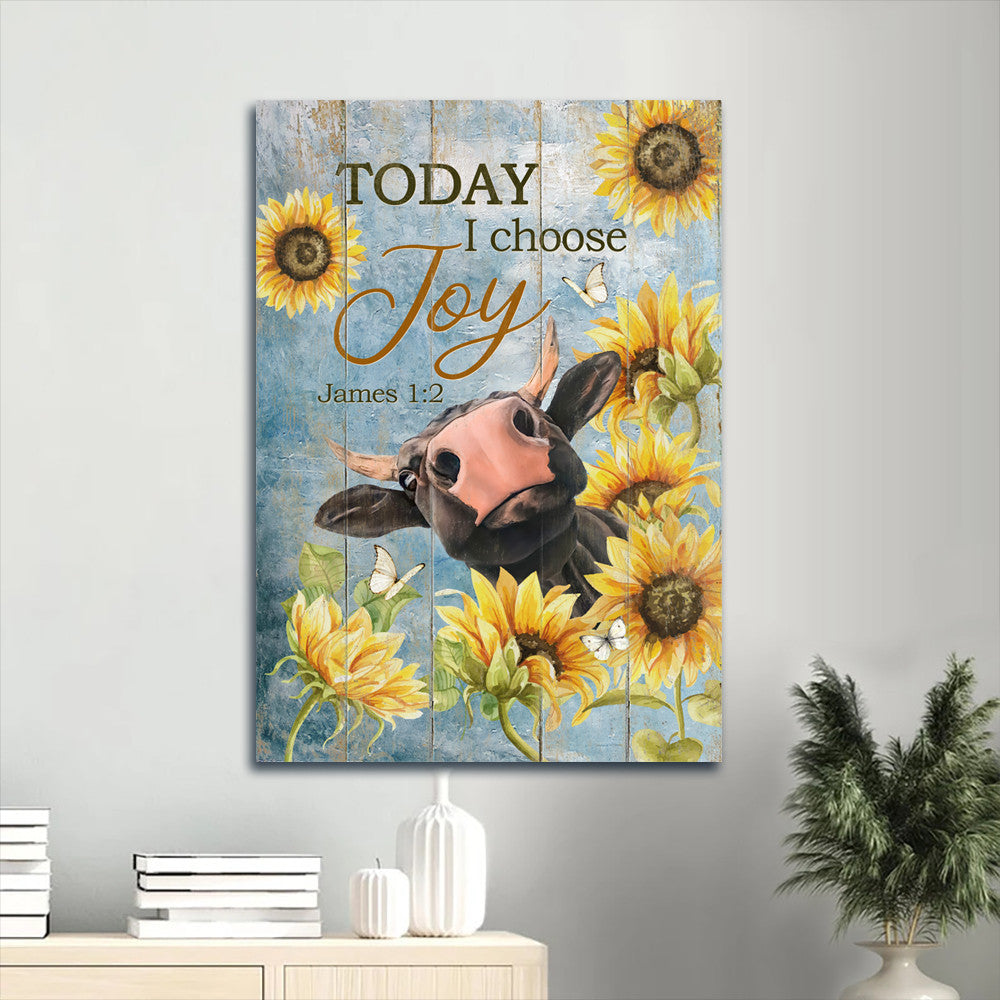 May your day be full of joy with this Jesus Portrait Canvas- Amazing Cow, Sunflower Frame, Blue Sky Portrait Canvas- Gift For Christian- Today I Choose Joy.