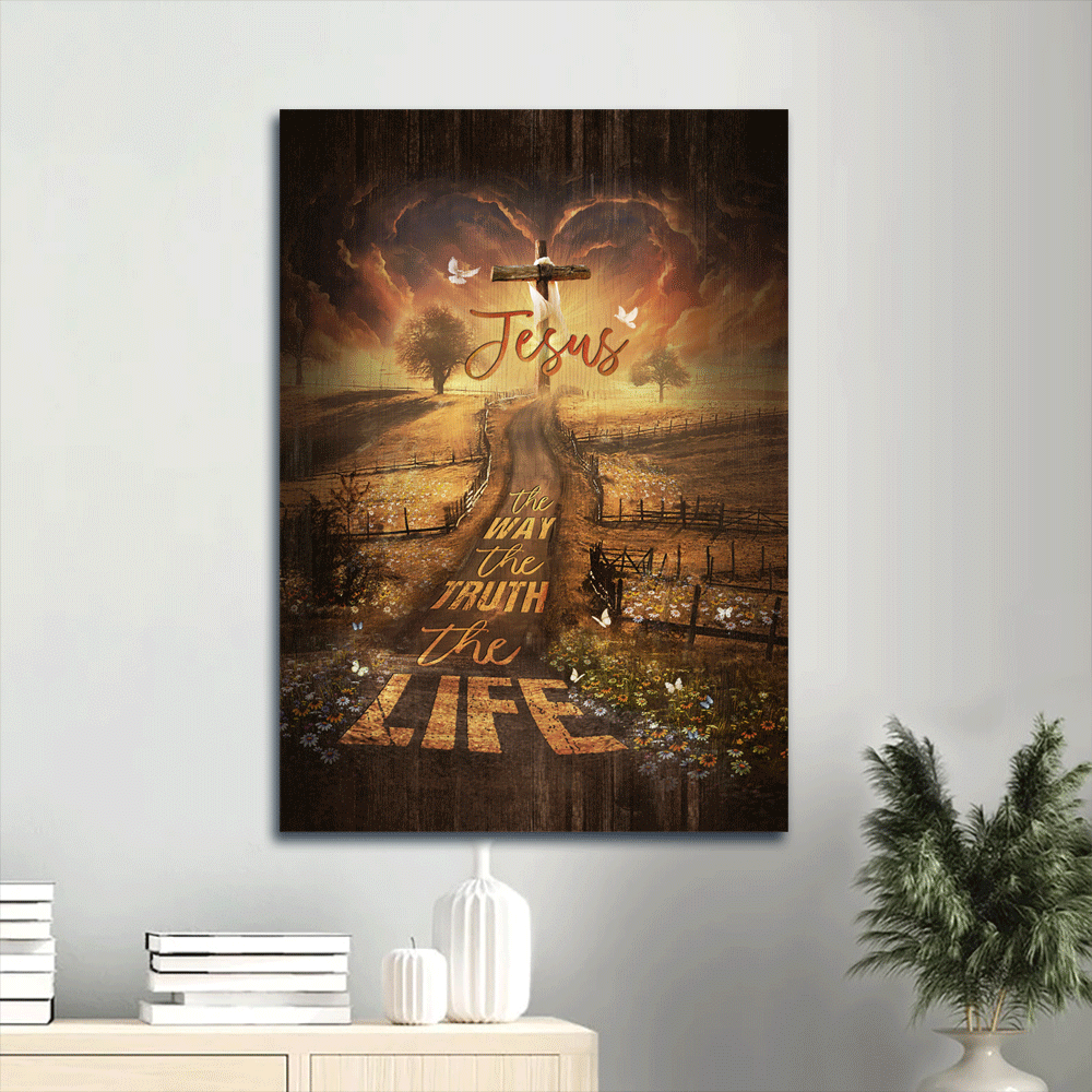 Jesus Portrait Canvas- Amazing Farm, Pretty Sunset, Daisy Field Portrait Canvas- Gift For Christian- The Way, The Truth, The Life