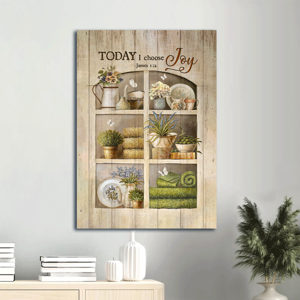 Jesus Portrait Canvas- Amazing Home Decor, Pretty Flower Vase, White Butterfly Portrait Canvas- Gift For Christian- Today I Choose Joy