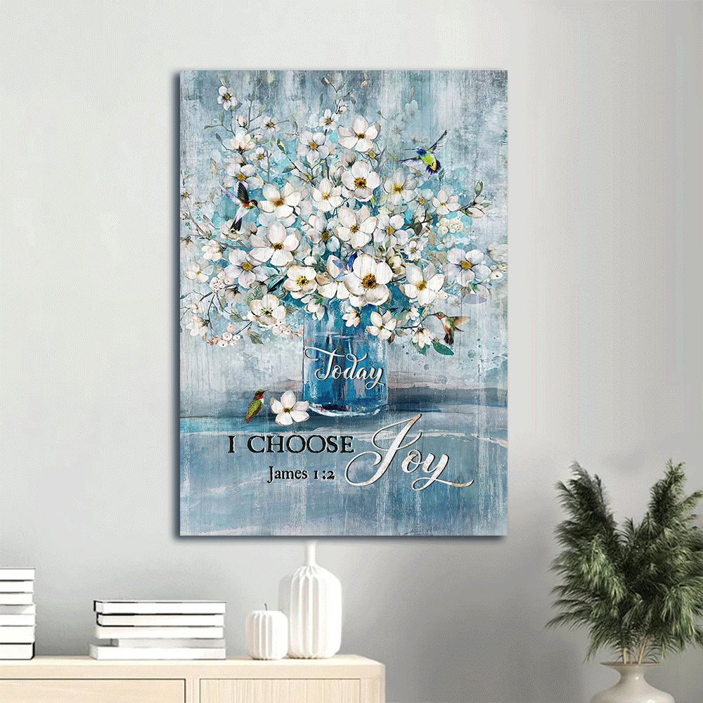 Jesus Portrait Canvas- Amazing Jasmine Flower, Blue Vase, Hummingbird Portrait Canvas, Today I Choose Joy Canvas- Gift For Christian.