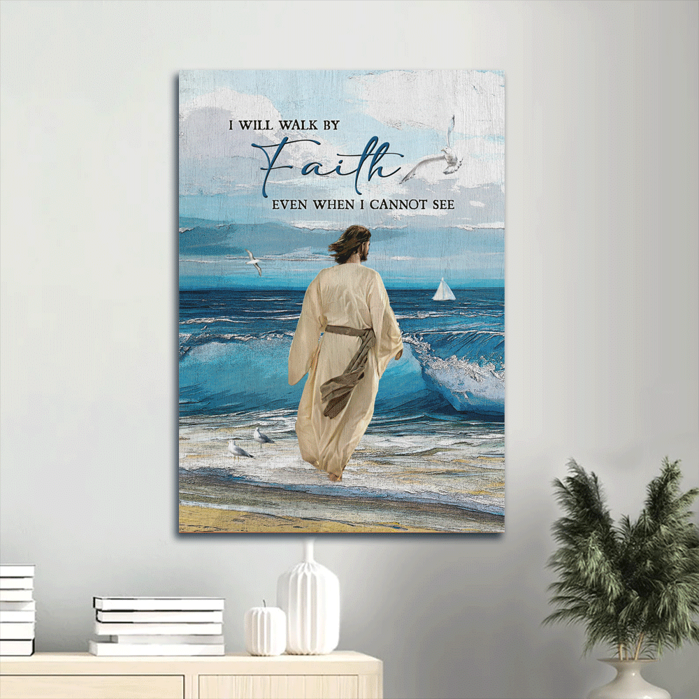 Jesus Portrait Canvas- Amazing Jesus Painting, Stunning Ocean, Seagull Canvas- Gift For Christian- I Will Walk By Faith